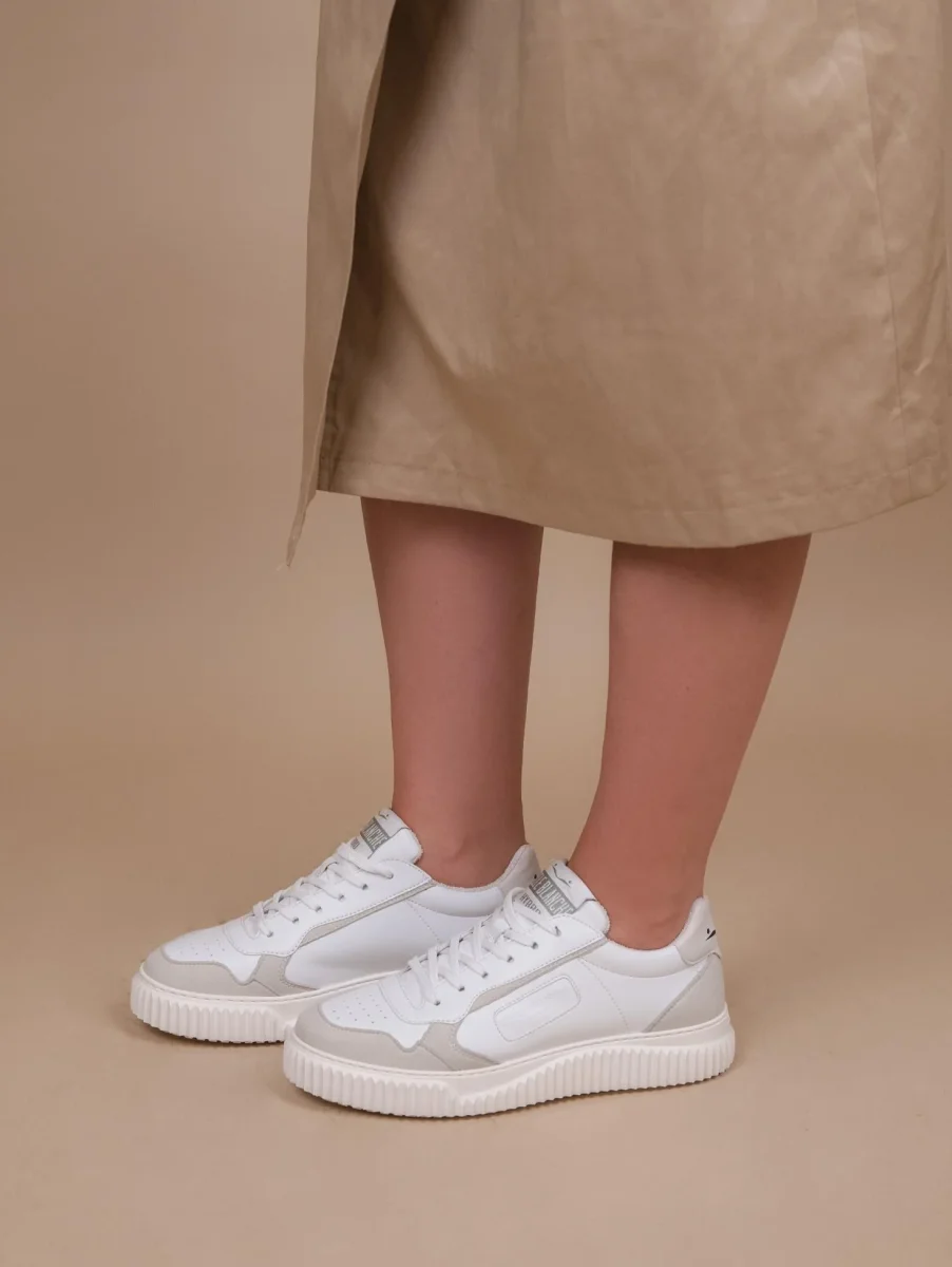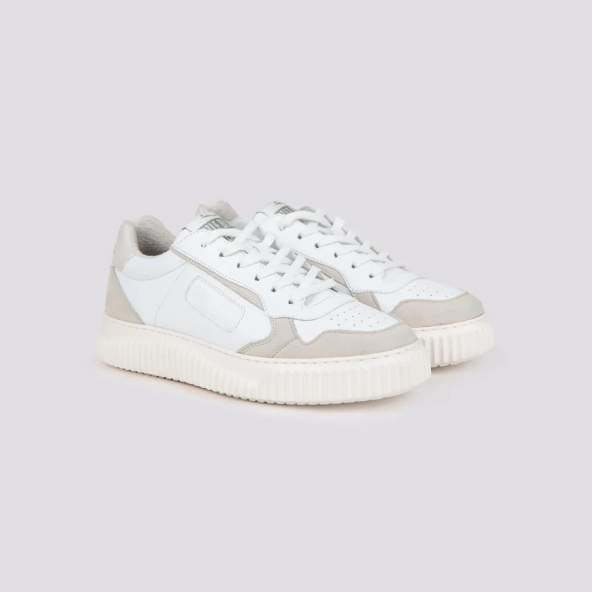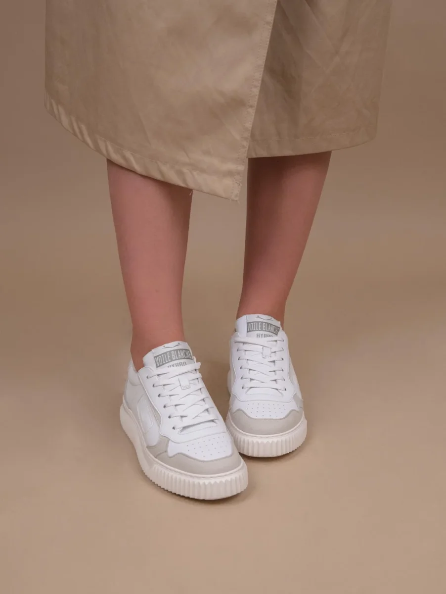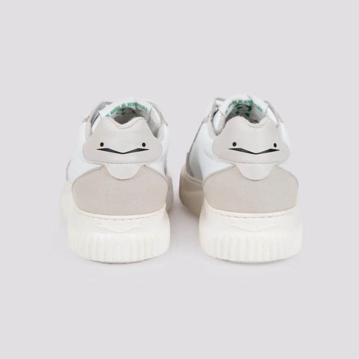 Sneakers in pelle vegetale, con lacci in PET riciclato e fondo ultra leggero in TPU riciclato al 100%. Questo modello dalle linee essenziali presenta una tomaia in pelle vegetale nata dagli scarti di lavorazione delle mele. La fodera interna è in cotone riciclato, mentre i lacci sono ottenuti dal riciclo di bottiglie in pet attraverso lavorazioni certificate. Il fondo ultraleggero è realizzato in TPU riciclato al 100%. Minimal e cool, dall’estetica anni ’90 con fodera a contrasto e patch laterale personalizzato.
