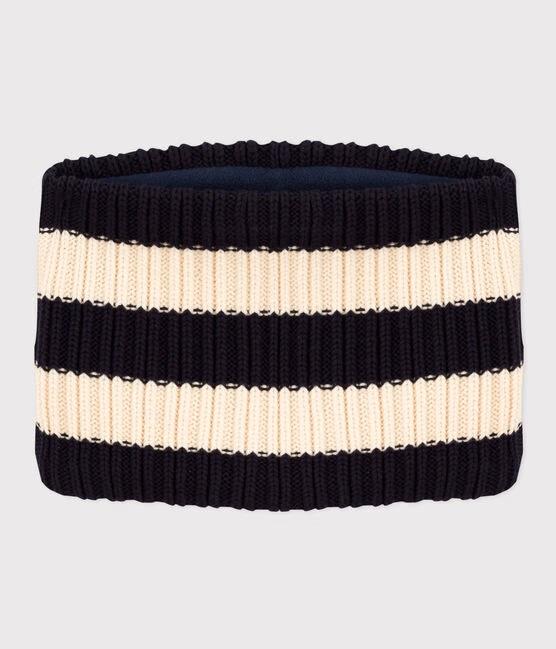 Questo snood unisex a righe è in cotone biologico ed è foderato in micropile per il massimo del calore.