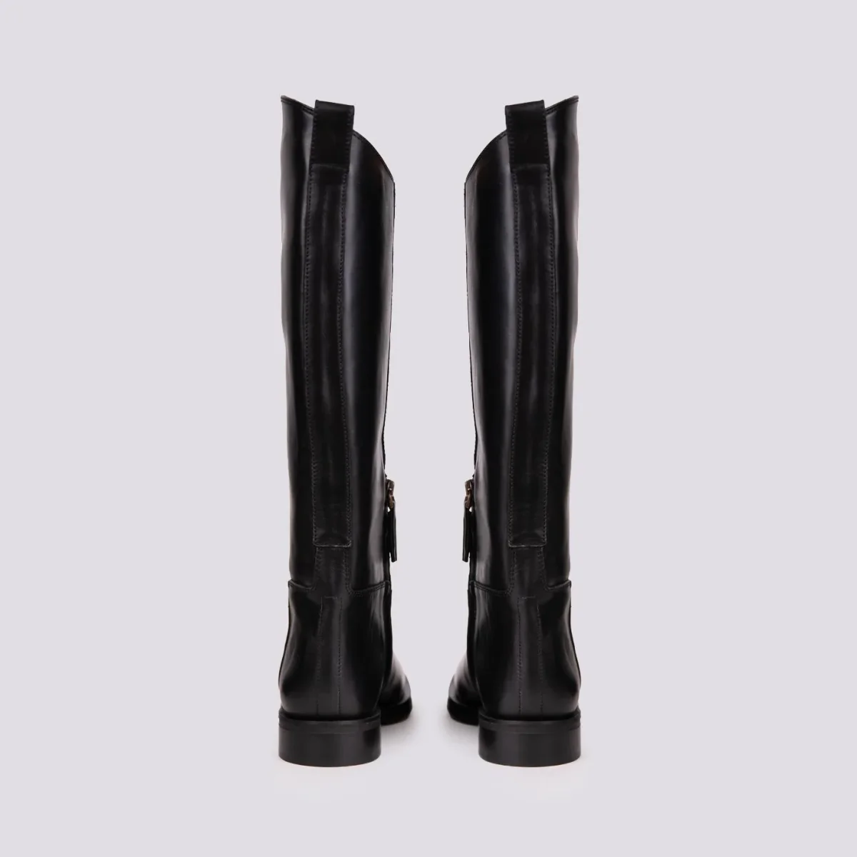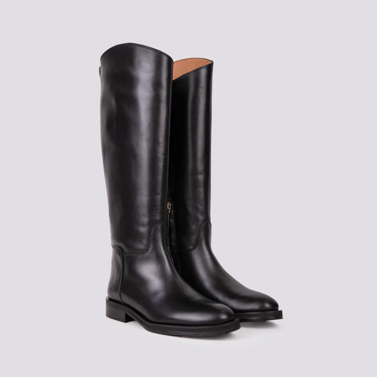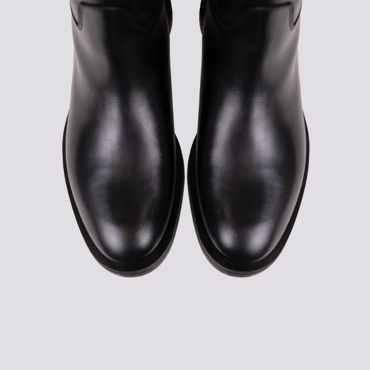 Stivale alto in camoscio nero con gambale asimmetrico, una scarpa essenziale da sfruttare nelle occasioni più disparate. Chiusura zip in metallo laterale che arriva fino a metà polpaccio per facilitare la calzata della scarpa. Punta stondata. Cuciture in rilievo in tonalità. Gambale largo che non si ripiega sulla caviglia e si erge fin sotto al ginocchio. Calzata regolare super confortevole già dal primo utilizzo. Altezza rialzo: 3 cm. Tomaia e fodera in vera pelle. Suola in cuoio.