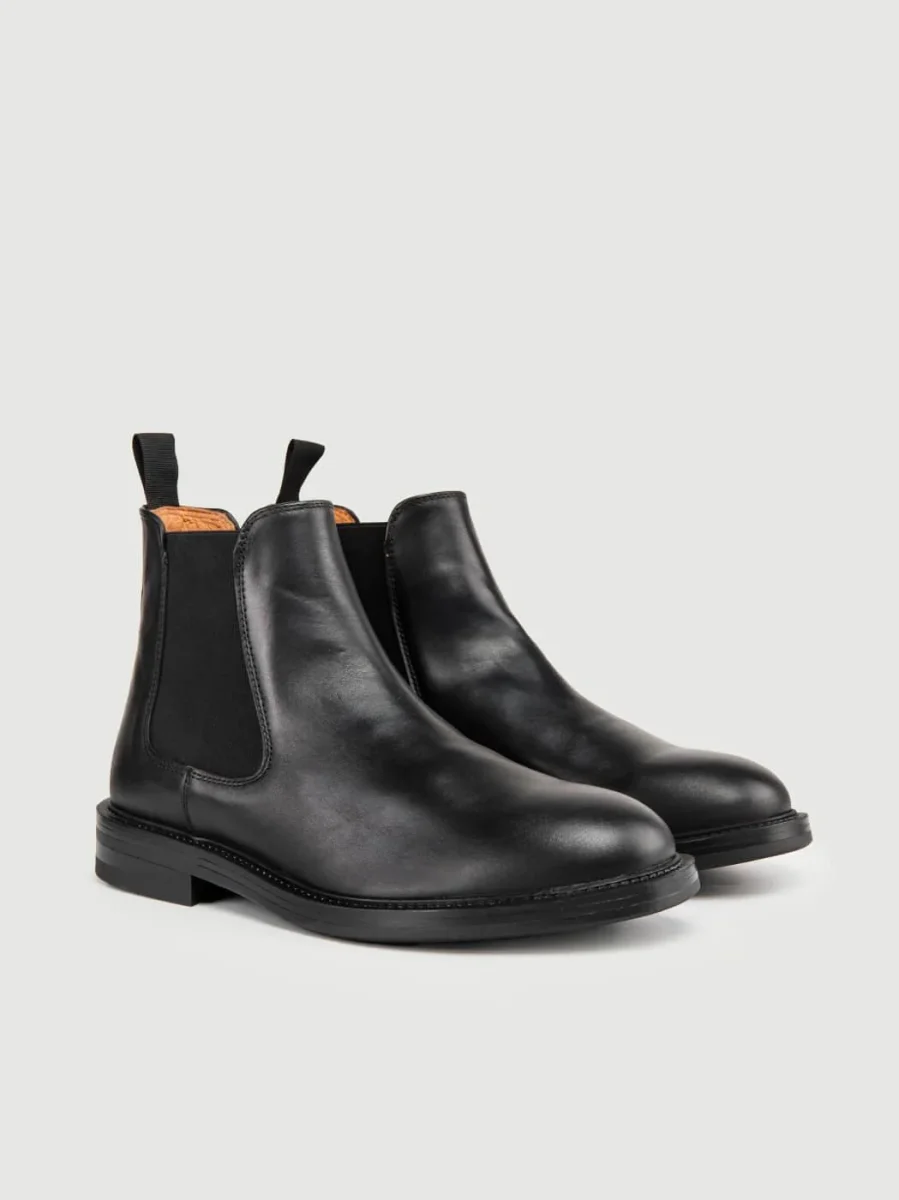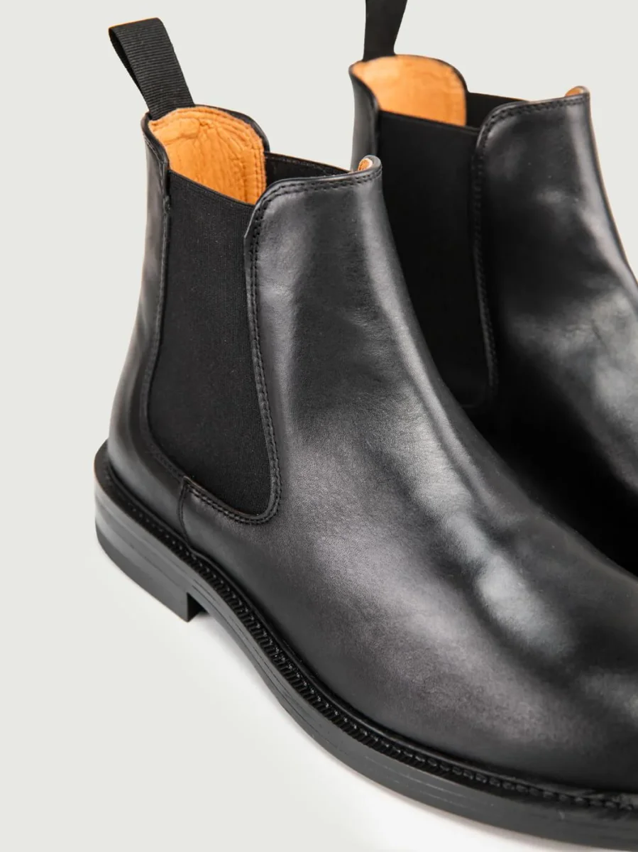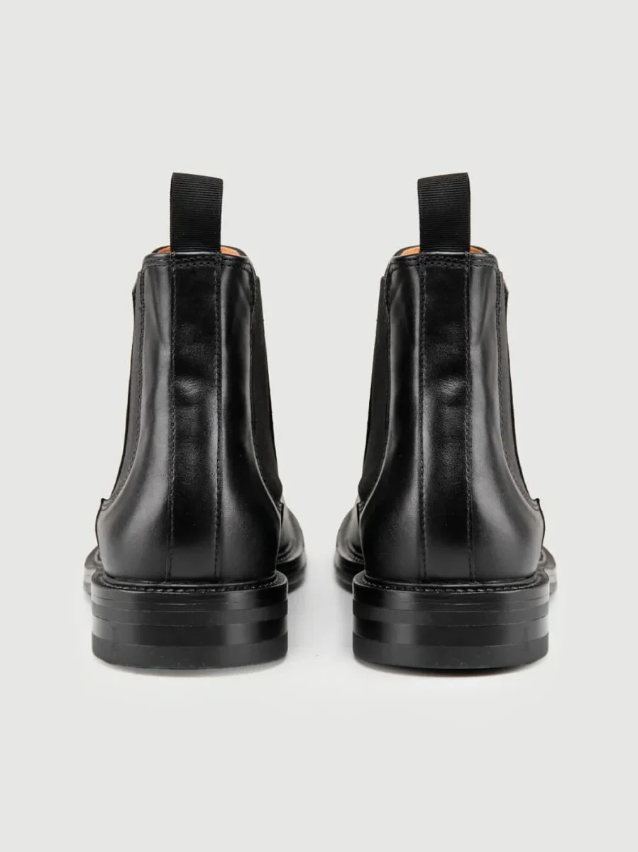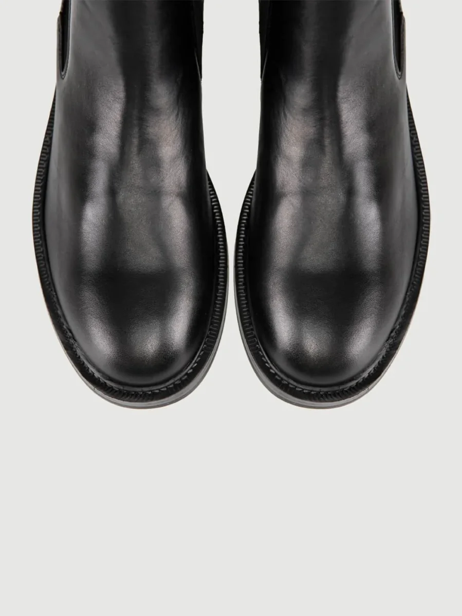 Stivaletto in pelle con inserti di tessuto elastico laterali per agevolare la calzata.