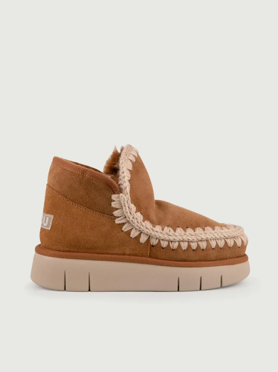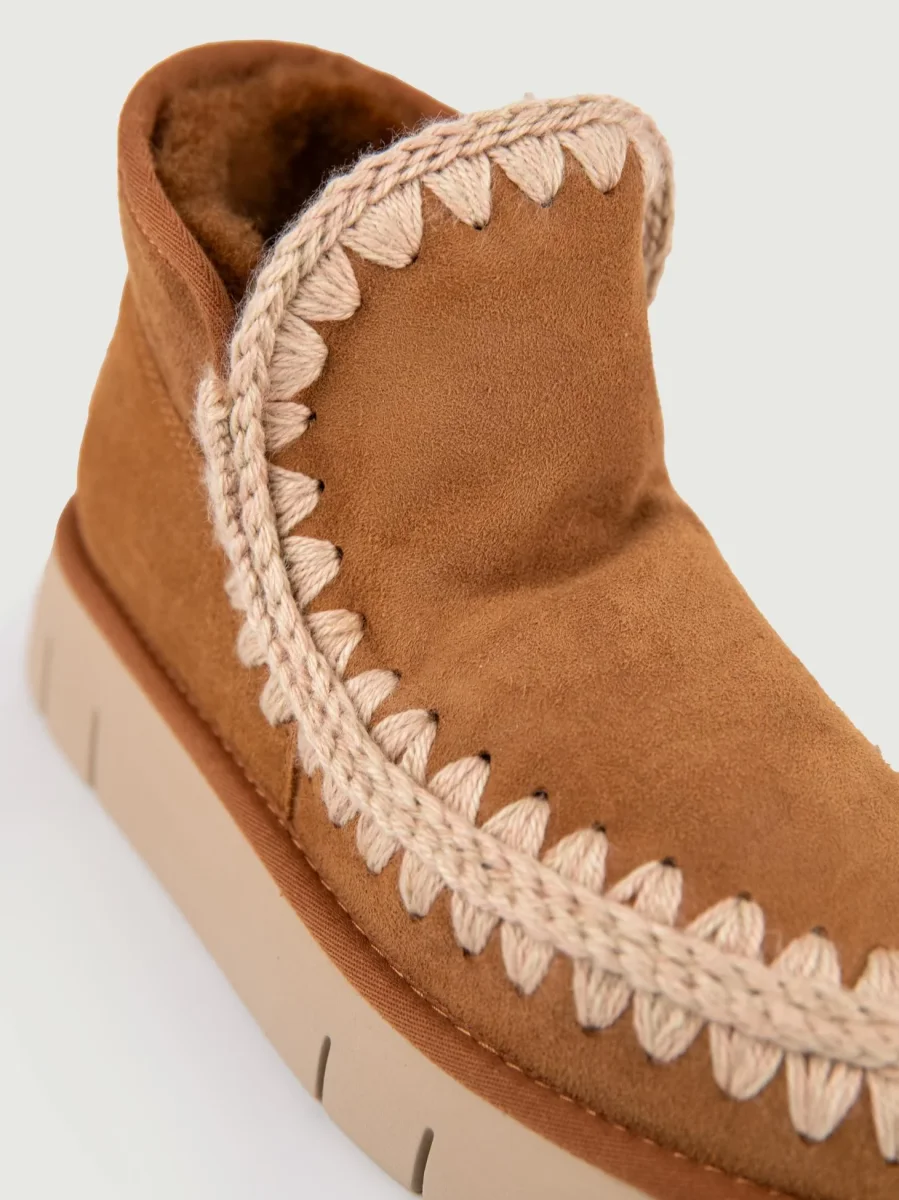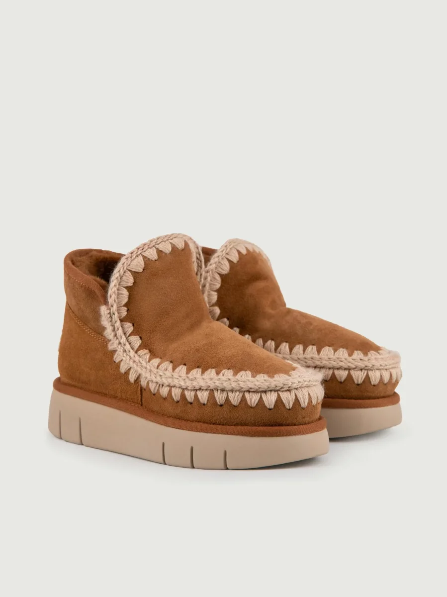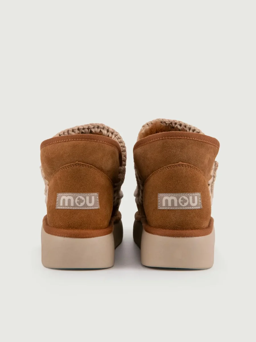 Stivaletto Mou Eskimo color cuoio in pelle scamosciata di montone double-face calda e confortevole con maxi para.