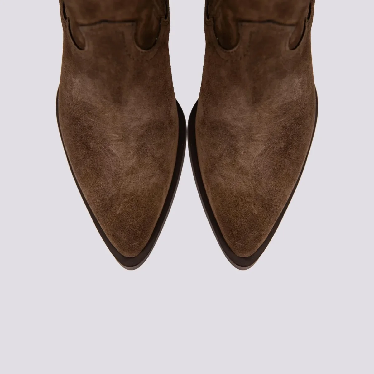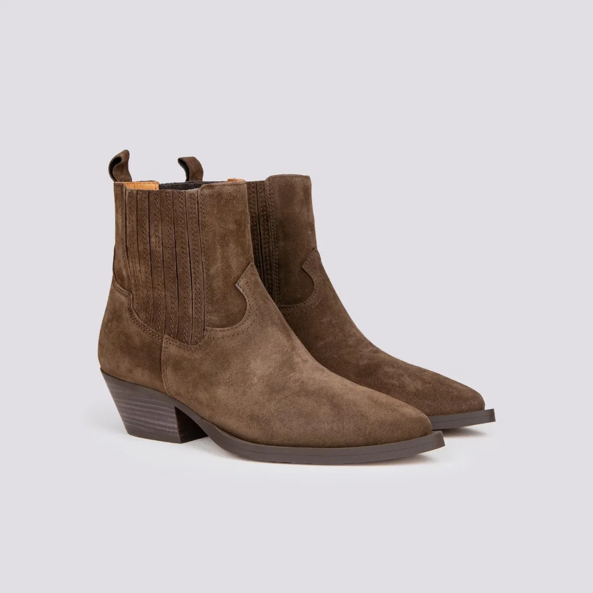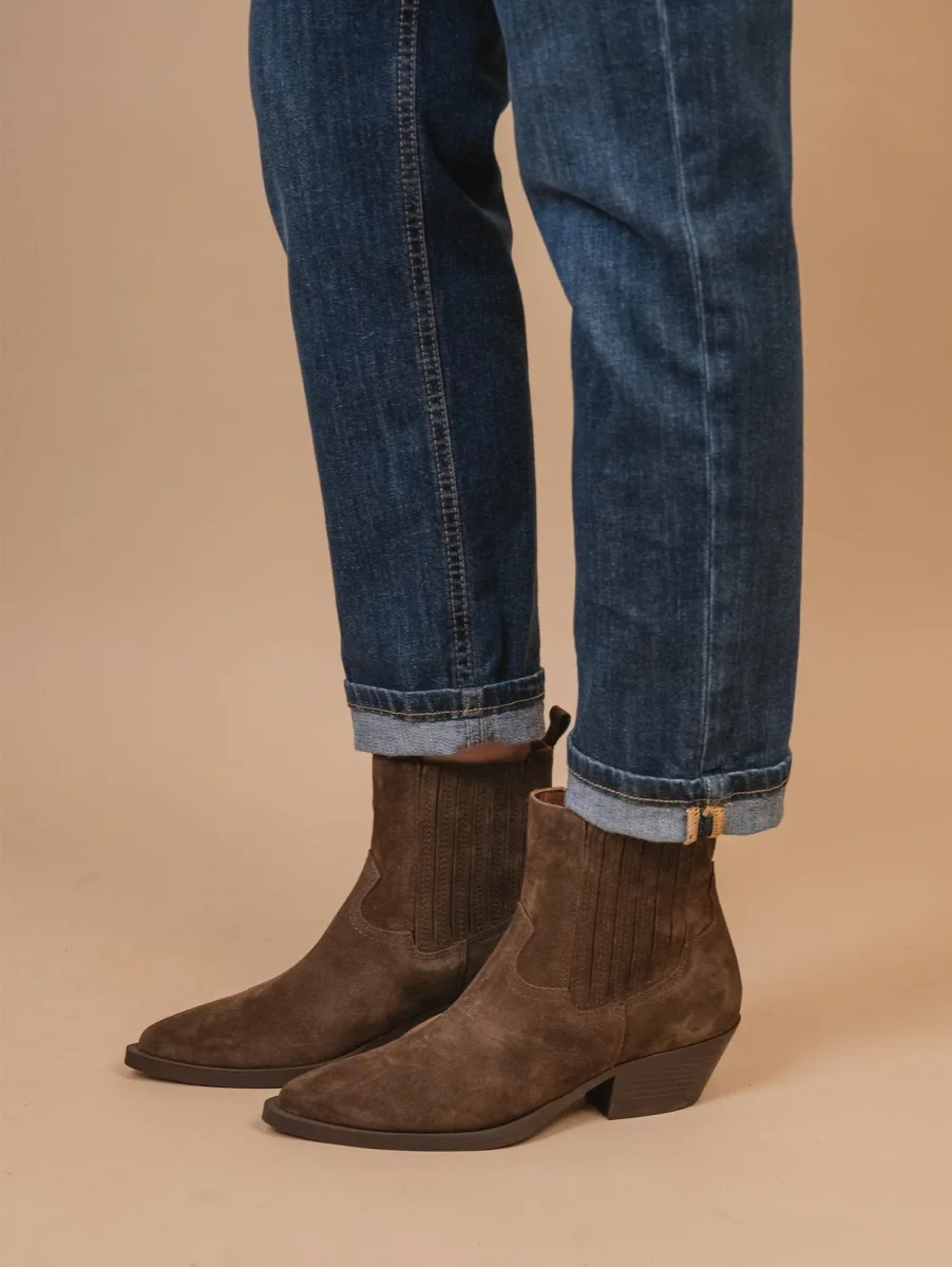 Chelsea boots a punta in camoscio marrone: lo stivaletto più grintoso ed essenziale di questo inverno. Profili elasticizzati rivestiti con inserti in pelle per faiclitare la calzata della scarpa. Il tacco scanalato aggiunge un tocco di personalità alla scarpa rendendone il design più sfilato. Linguetta posteriore in pelle. Calzata regolare. Tomaia e fodera in vera pelle, suola in gomma. Altezza tacco 5 cm.