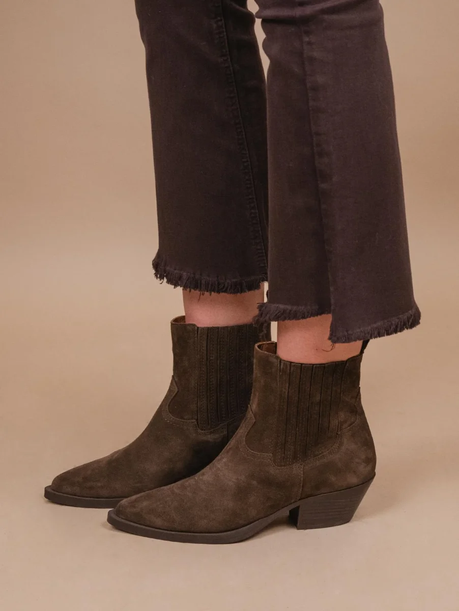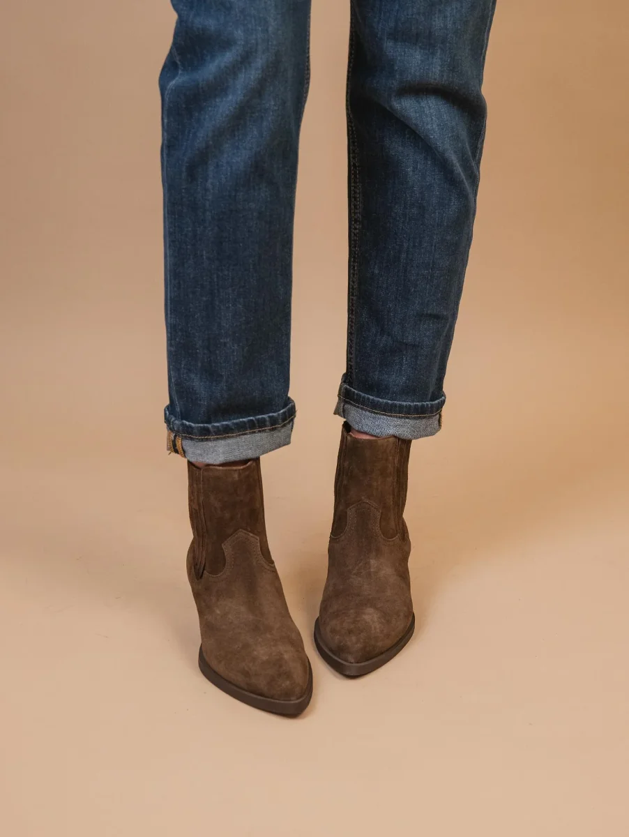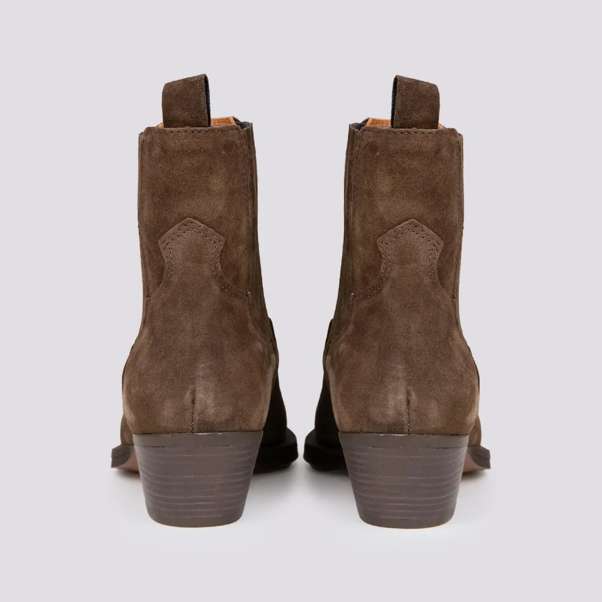 Chelsea boots a punta in camoscio marrone: lo stivaletto più grintoso ed essenziale di questo inverno. Profili elasticizzati rivestiti con inserti in pelle per faiclitare la calzata della scarpa. Il tacco scanalato aggiunge un tocco di personalità alla scarpa rendendone il design più sfilato. Linguetta posteriore in pelle. Calzata regolare. Tomaia e fodera in vera pelle, suola in gomma. Altezza tacco 5 cm.
