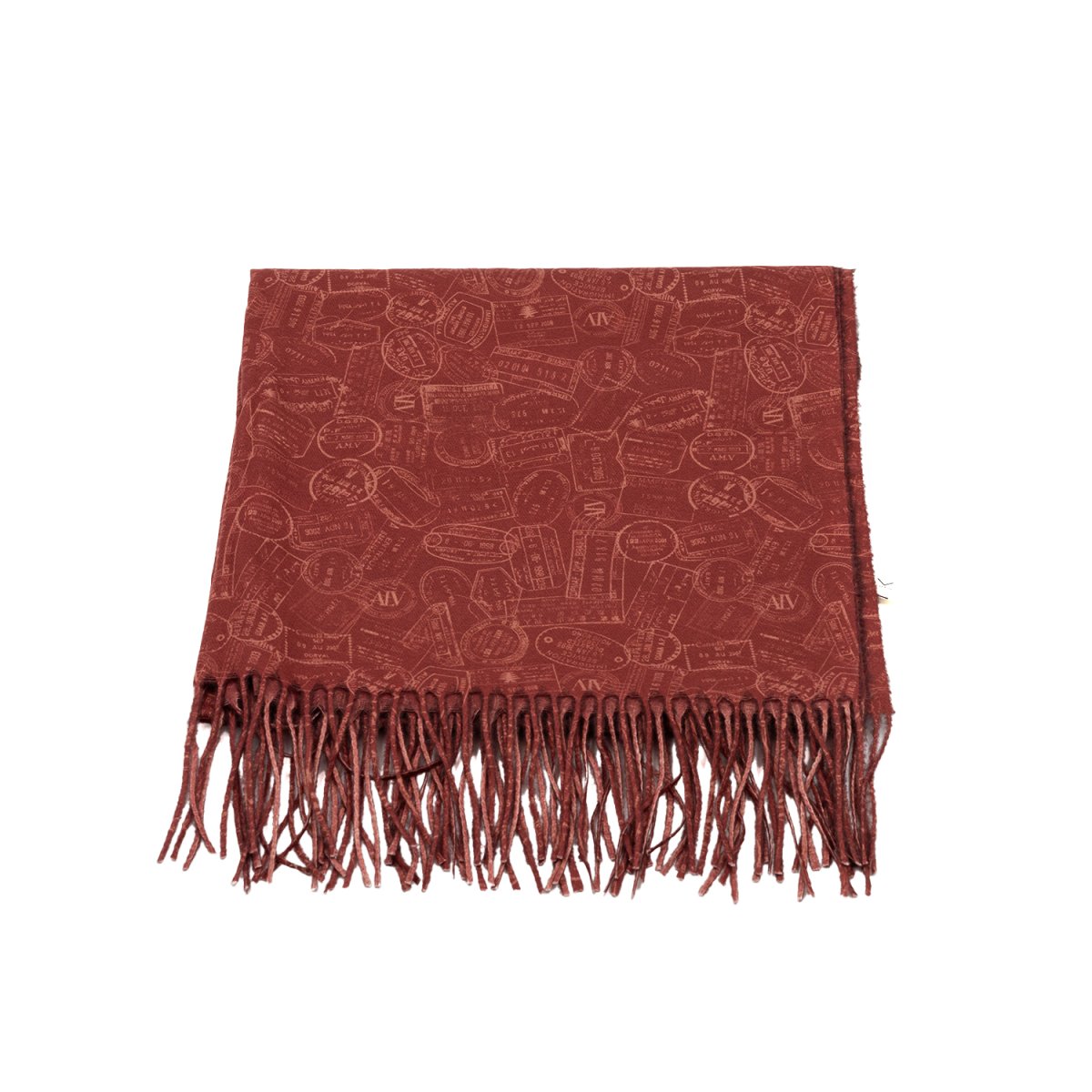 Sciarpa tessile ALV by Alviero Martini caratterizzata dall’iconica stampa “passport stamps”, simbolo dell’anima cosmopolita del brand. Realizzata in tessuto morbido e leggero, offre un comfort avvolgente e un tocco di eleganza ideale per ogni occasione. Le frange alle estremità aggiungono movimento e stile, rendendola un accessorio versatile perfetto per completare con raffinatezza qualsiasi outfit.