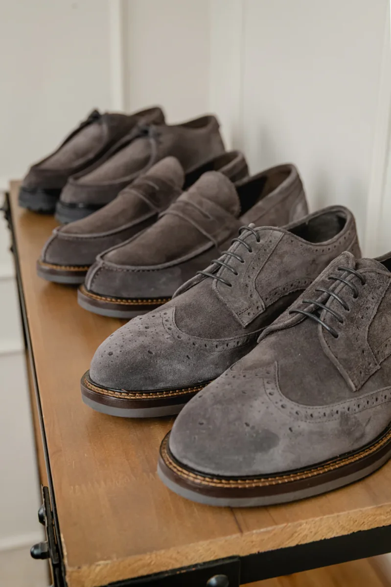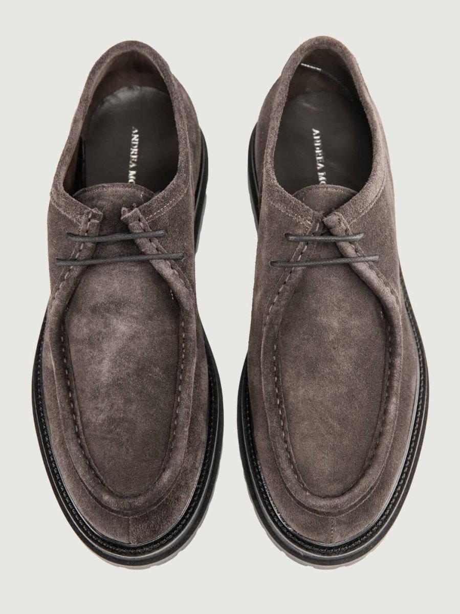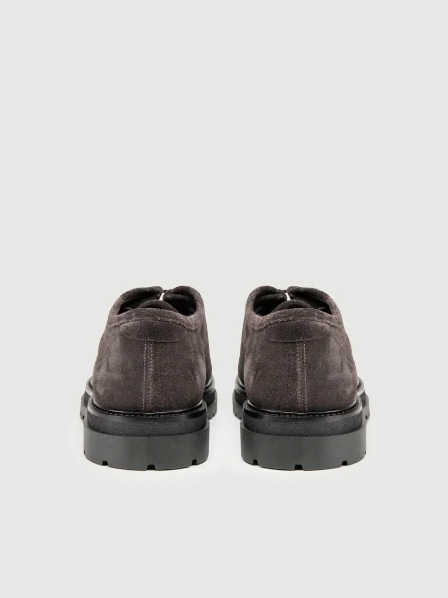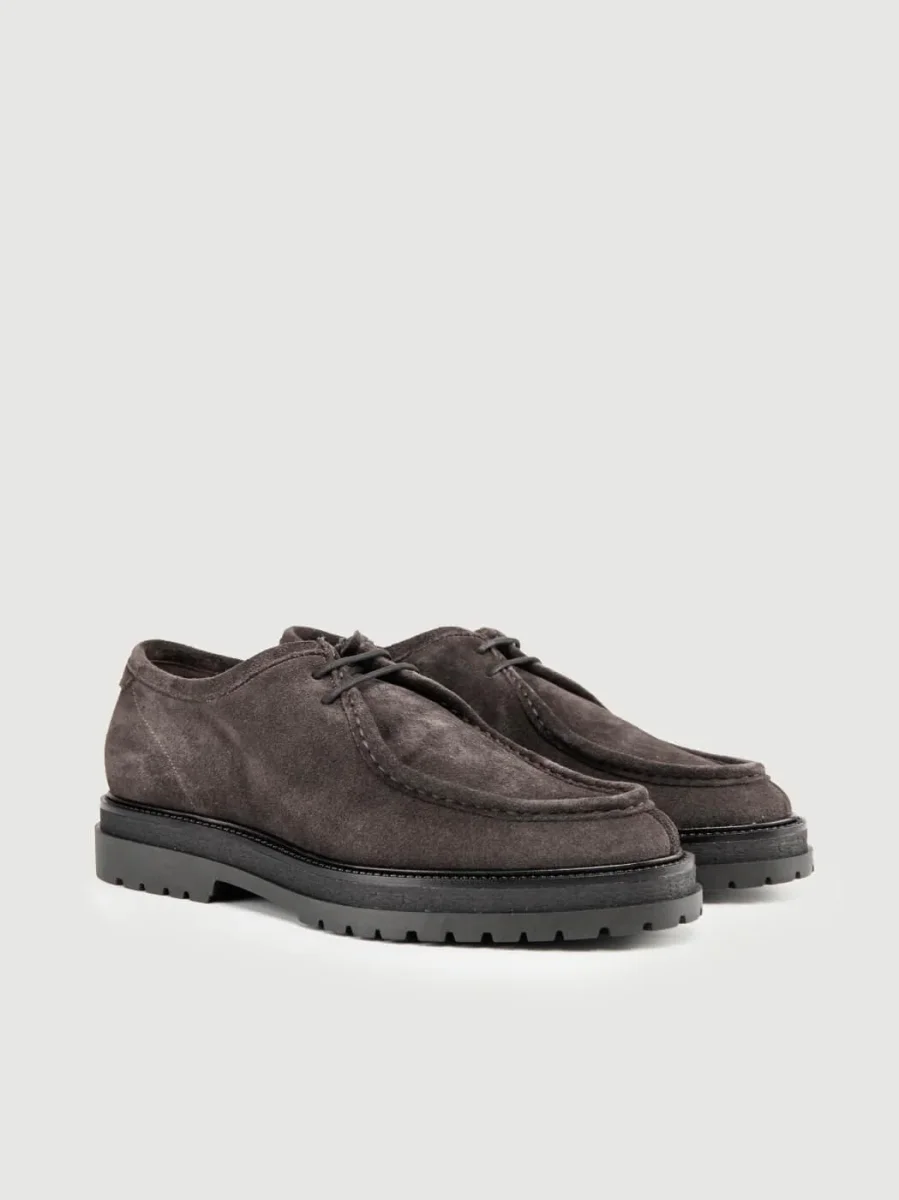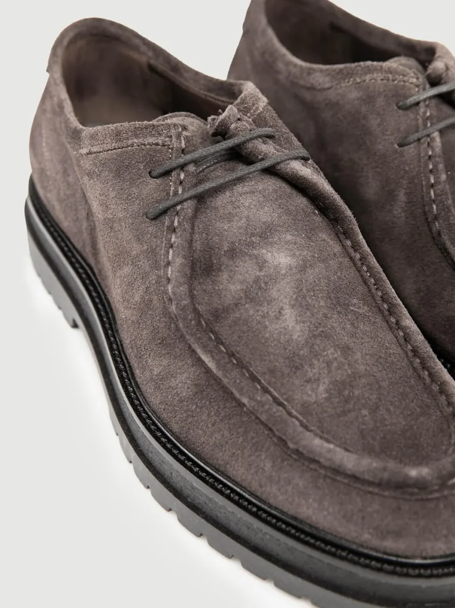 Stringata in pelle scamosciata grigia.