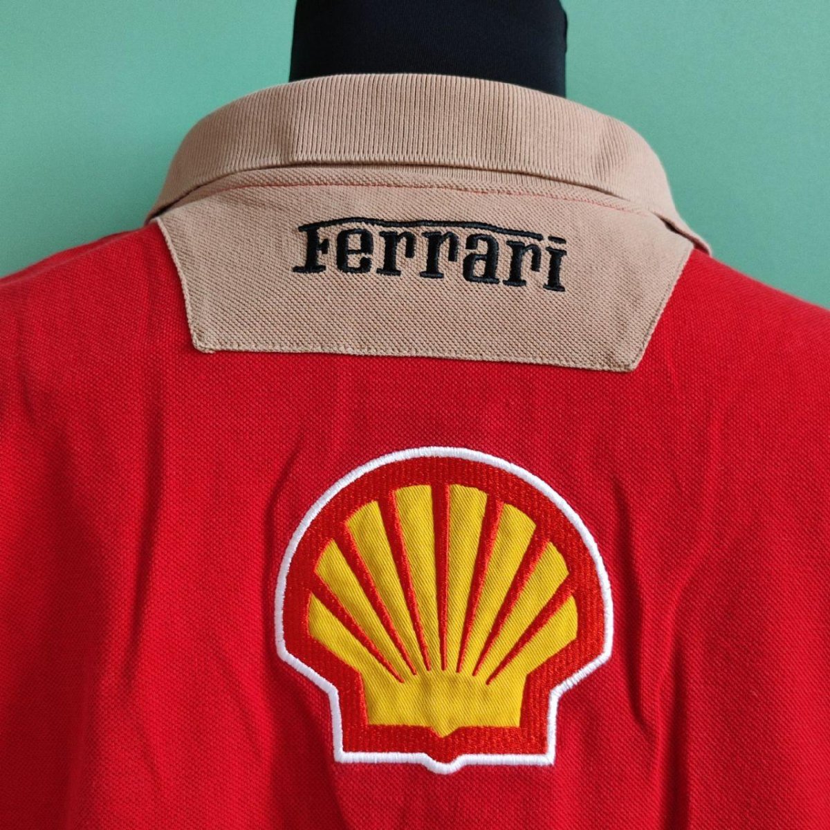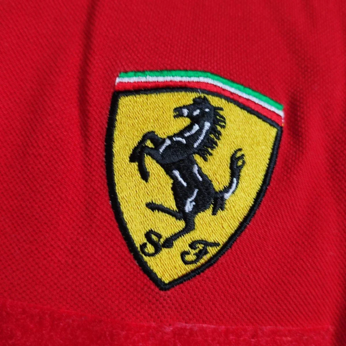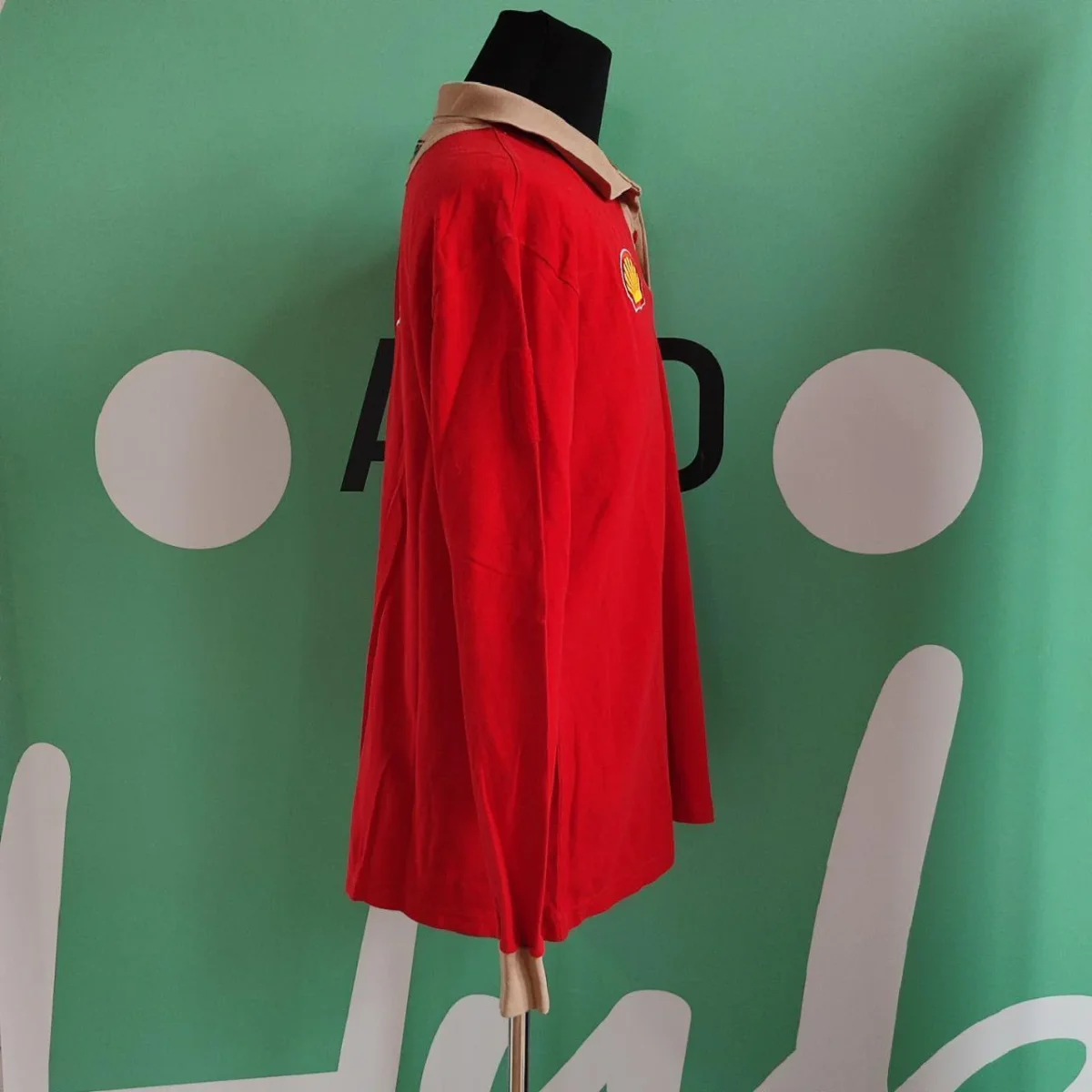 Tshirt a manica lunga, marca Ferrari abbigliamento, taglia L. Il capo si presenta in ottime condizioni, presenta giusto un piccolo difetto nella parte centrale dove è presenta una macchia, che rimane comunque abbastanza impercettibile. Di colore rosso, con vari patch in tessuto attaccati sulle maniche e sul petto. Dietro presenta il tipico logo del brand automobilistico Ferrari. Il capo è composto al 100% cotone.