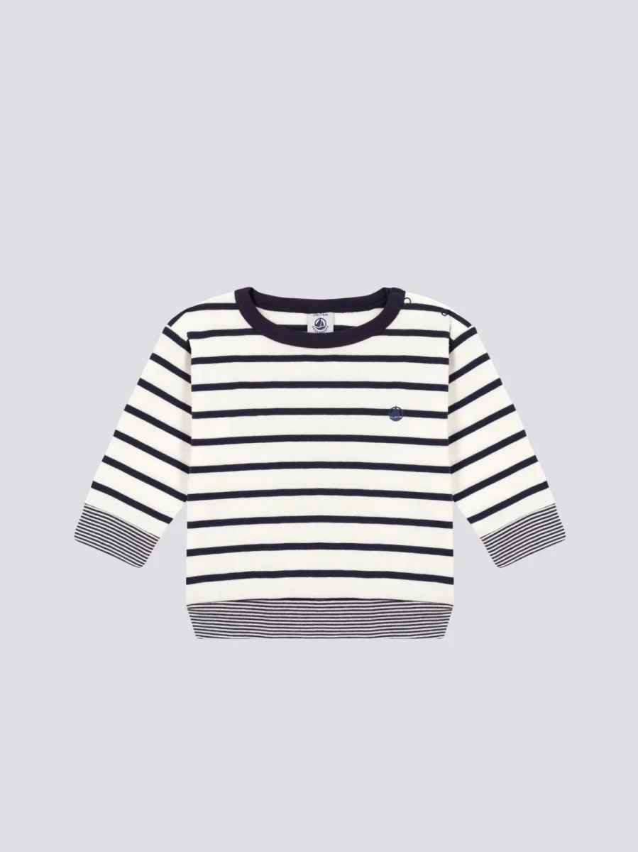 T-shirt a manica lunga a costine, il tessuto emblematico di Petit Bteau.