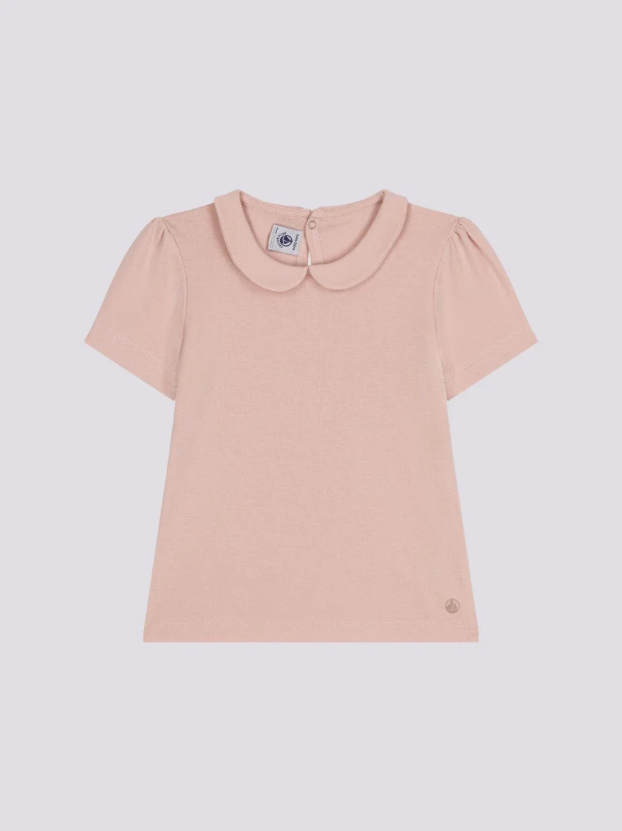 T-shirt a manica corta con colletto alla claudine, morbido e confortevole.