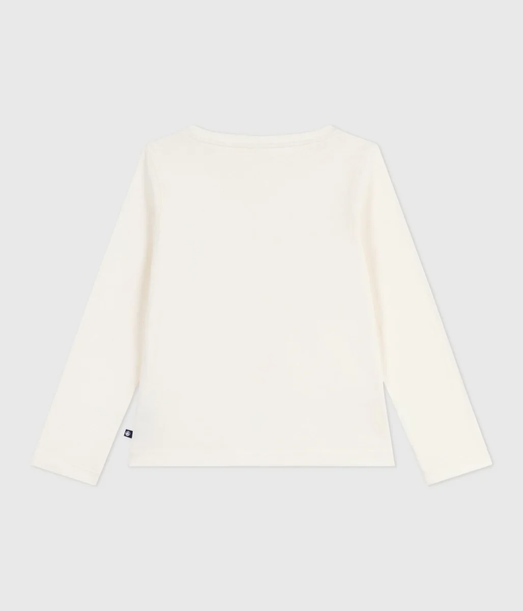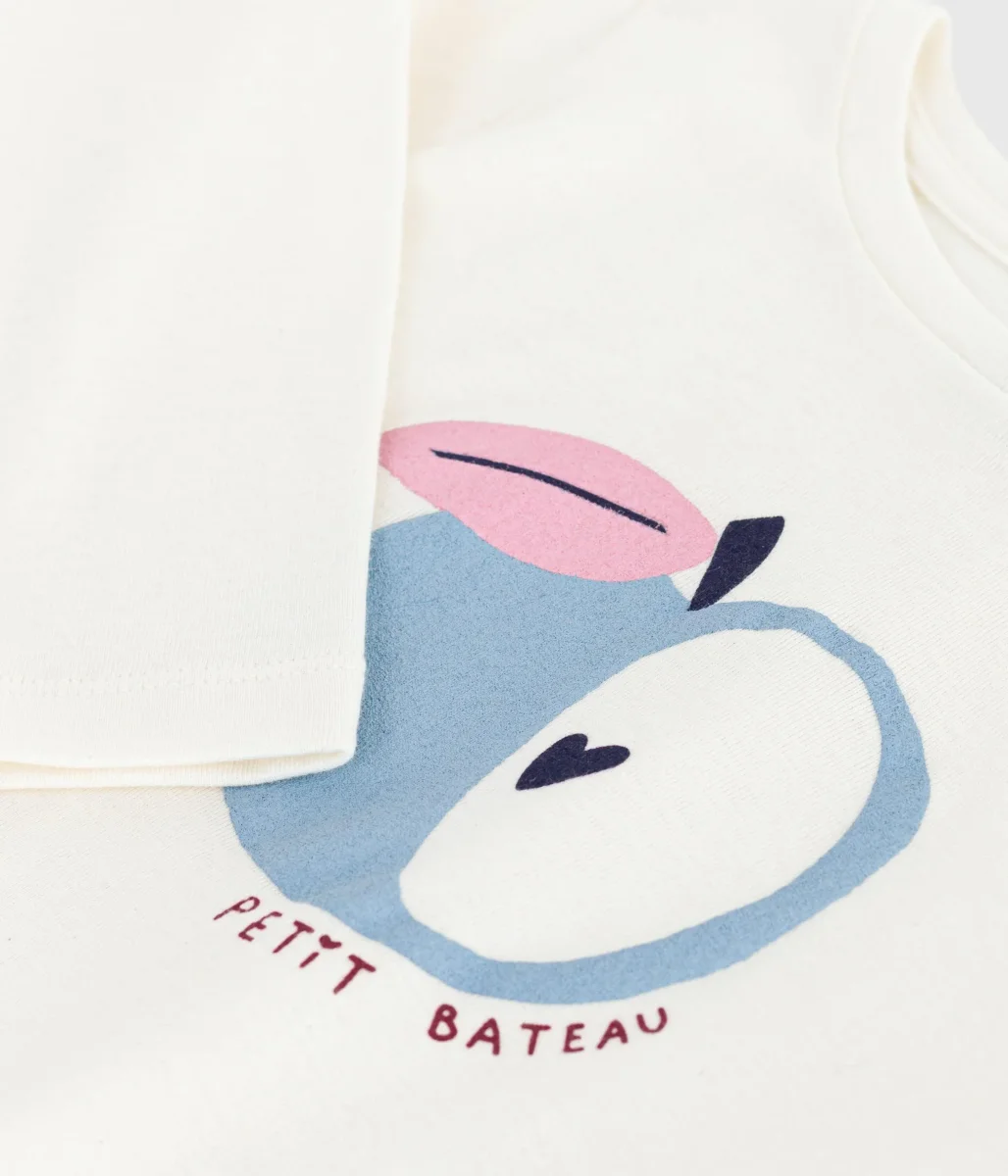 T-shirt bambina in tessuto a costine 1×1, un materiale flessibile e comodo con stampa mela.