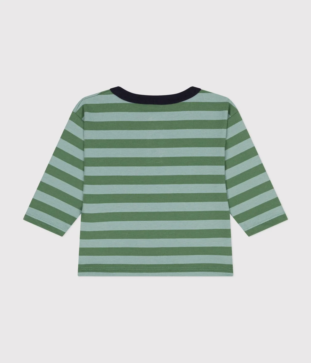 T-shirt a righe marinière verde a maniche lunghe