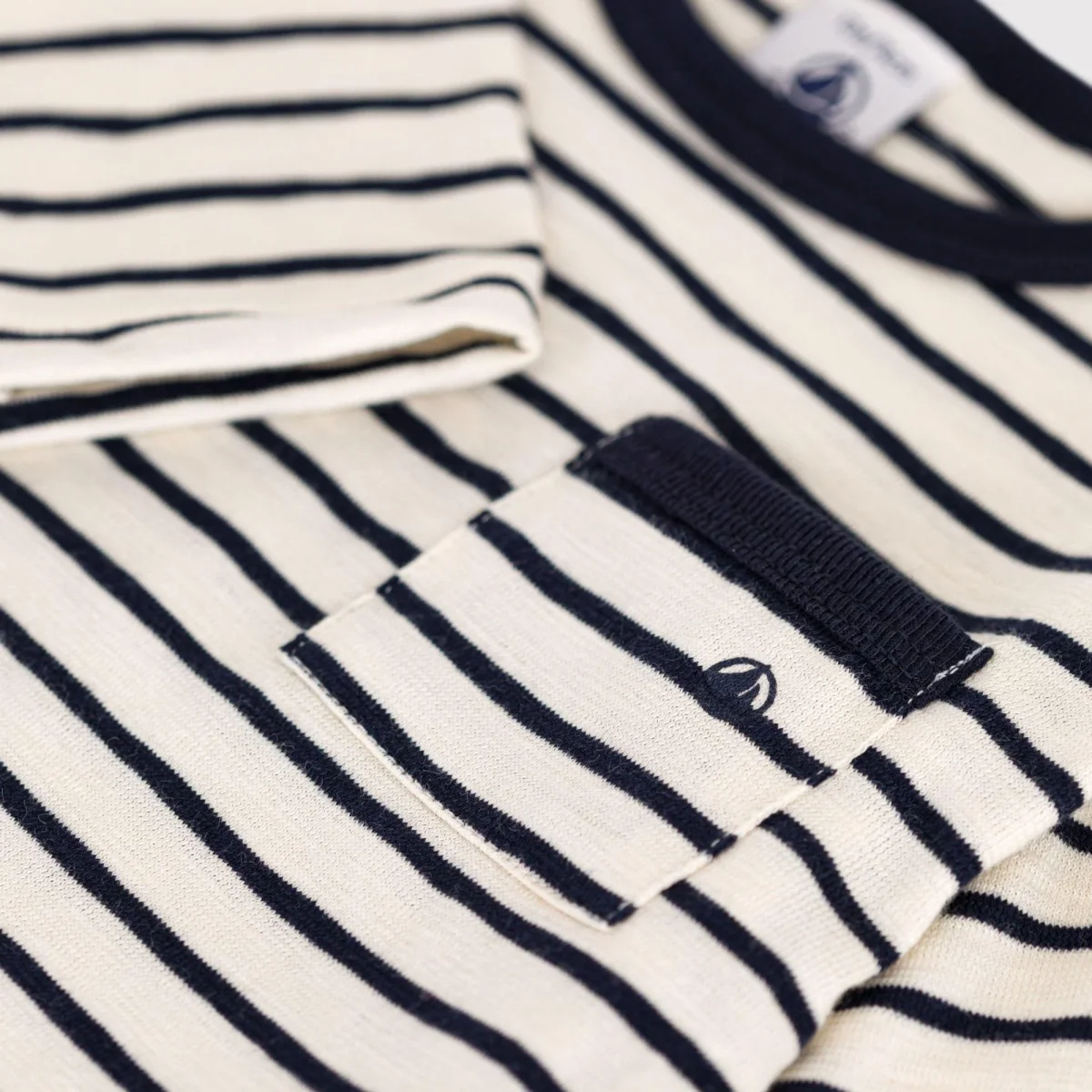 Tasca applicata sul petto a righe con logo Petit Bateau.
