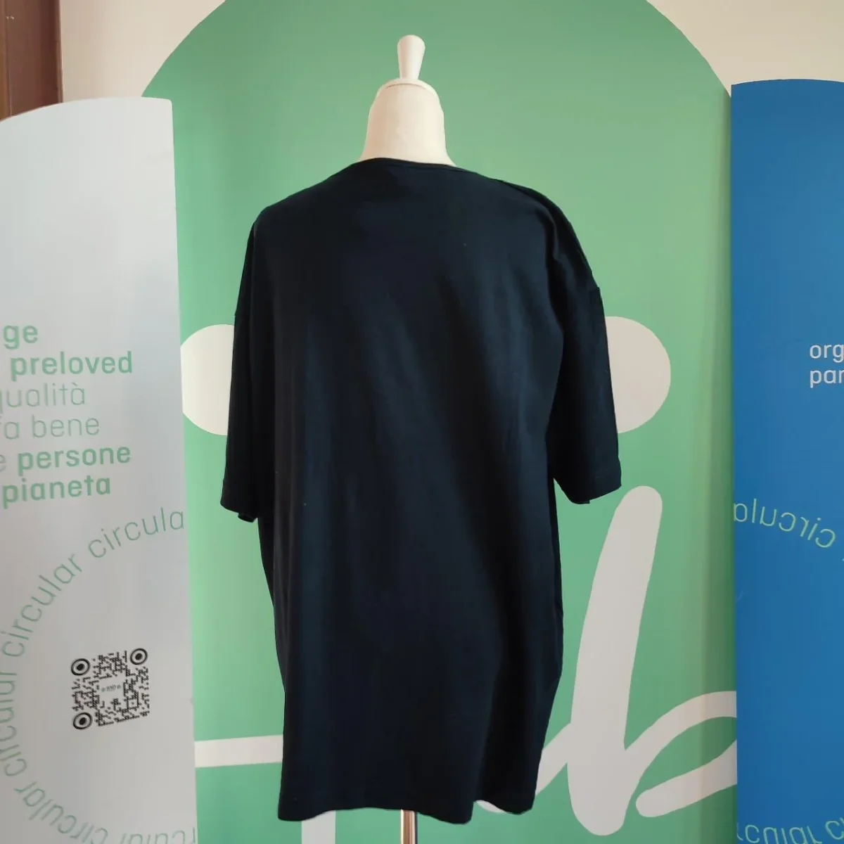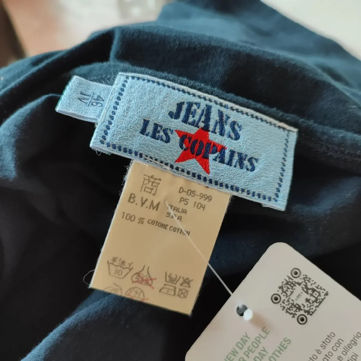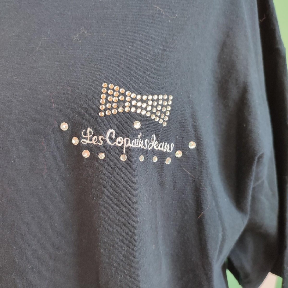 T shirt blu, marca Les Copains. In alto a sinistra è riportato il logo, decorato con dei brillantini. Capo semplice, in buone condizioni. Taglia 46, composta in cotone.