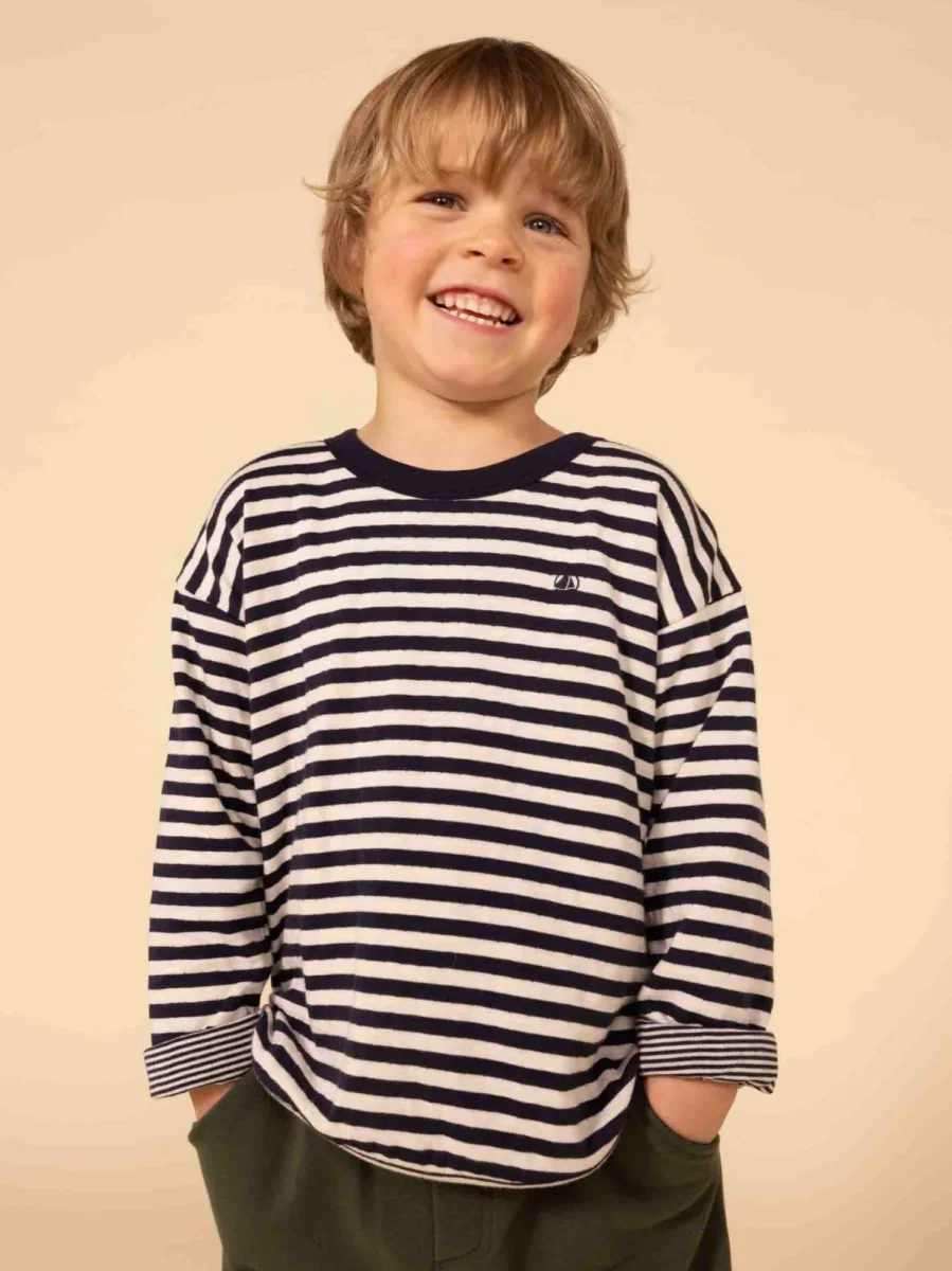 T-shirt a manica lunga in tubique a righe, tessuto morbido e confortevole.