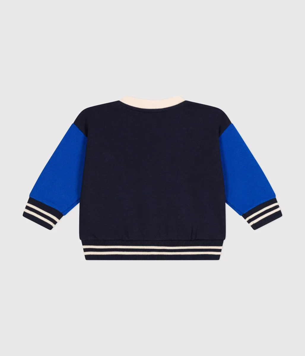 Adorabile con le maniche di colore a contrasto e il motivo applicato sul petto.