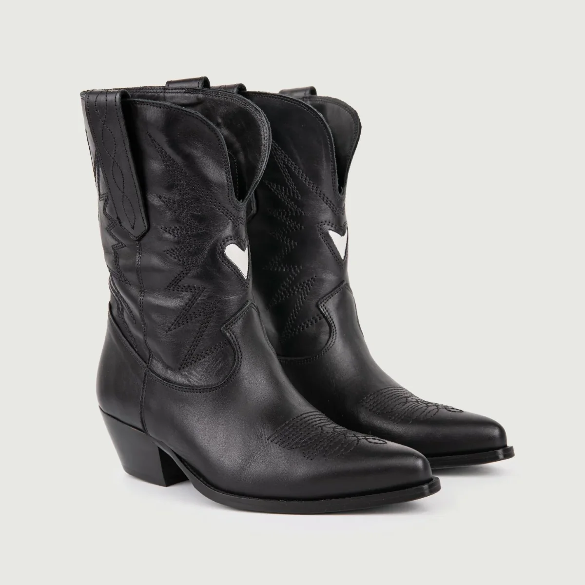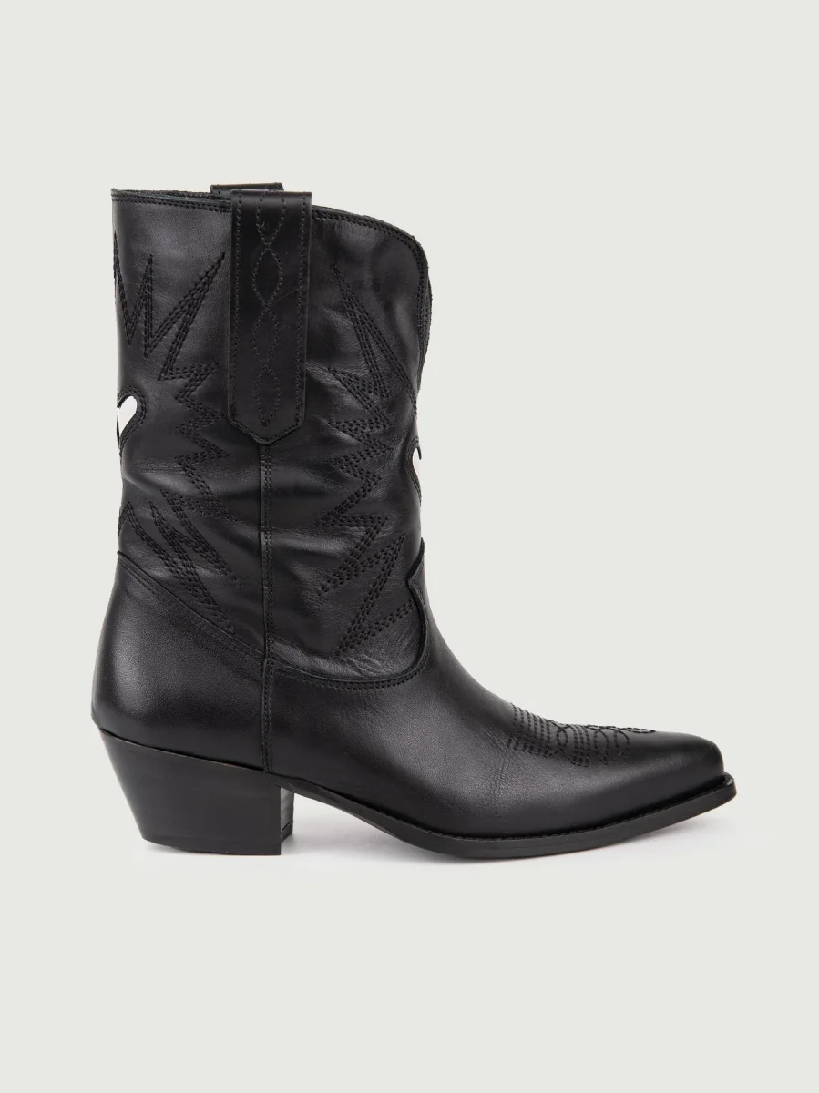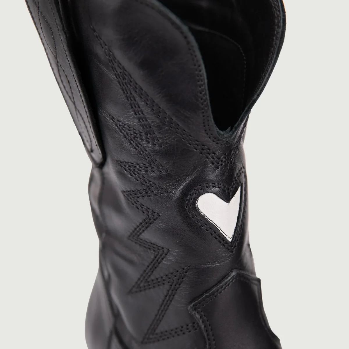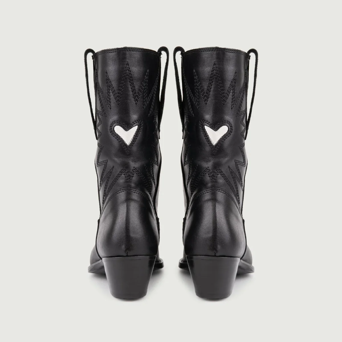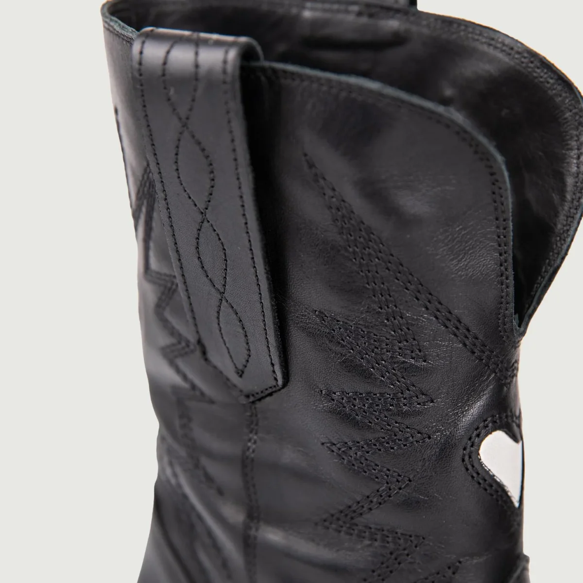 TEXANO IN PELLE NERA CON DETTAGLIO CUORE