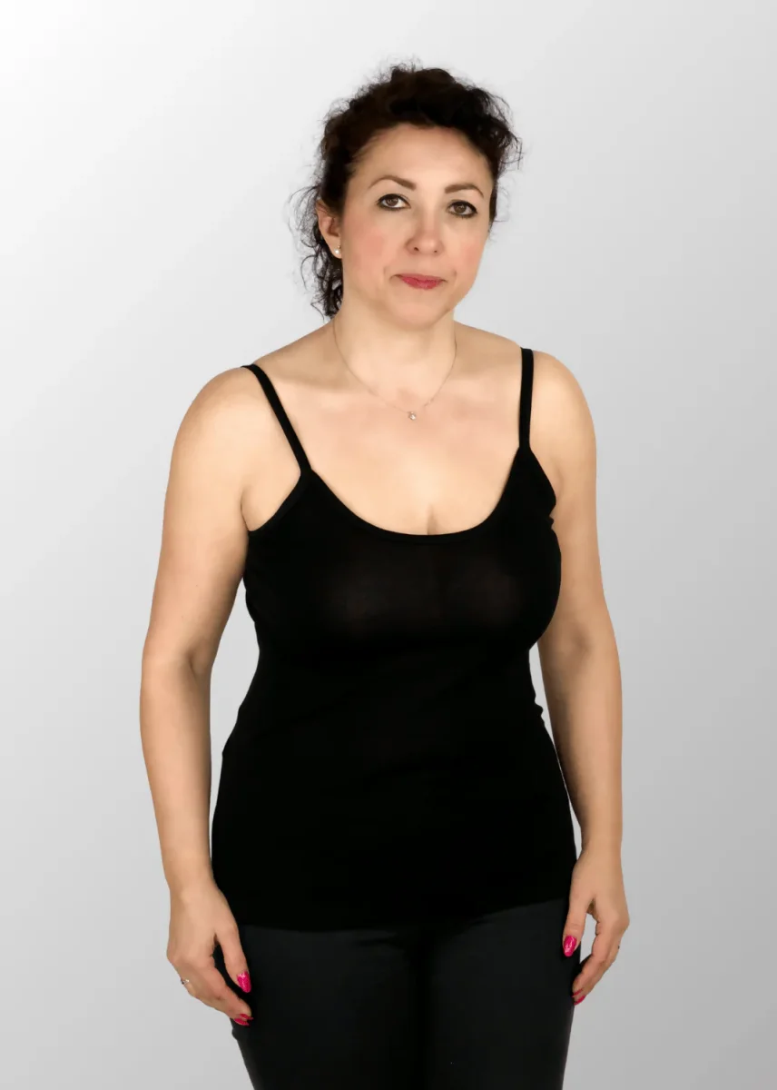 Top a spalla stretta da donna realizzato in Cotone Seta (senza elastan), una fibra naturale pregiata che dona al capo una mano delicata ed estremamente fresca e morbida consigliata nelle giornate estive. Questo tessuto è molto elastico e garantisce un’ottima vestibilità in tutte le taglie.