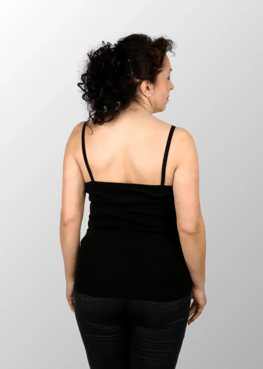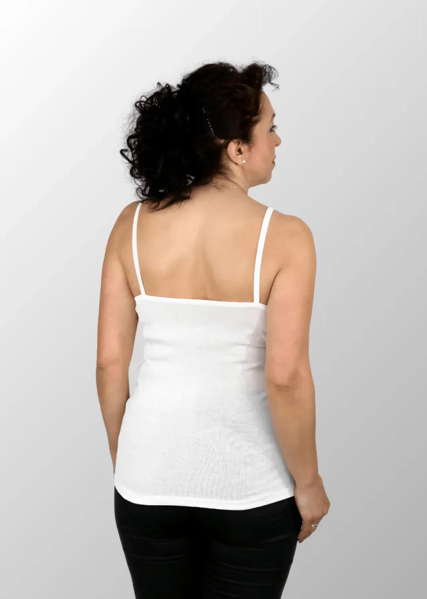 Top a spalla stretta con un inserto in pizzo macramé sul balconcino, realizzata in Cotone Seta (senza elastan), una fibra naturale pregiata che dona al capo una mano delicata ed estremamente fresca e morbida consigliata nelle giornate estive. Questo tessuto è molto elastico e garantisce un’ottima vestibilità in tutte le taglie.