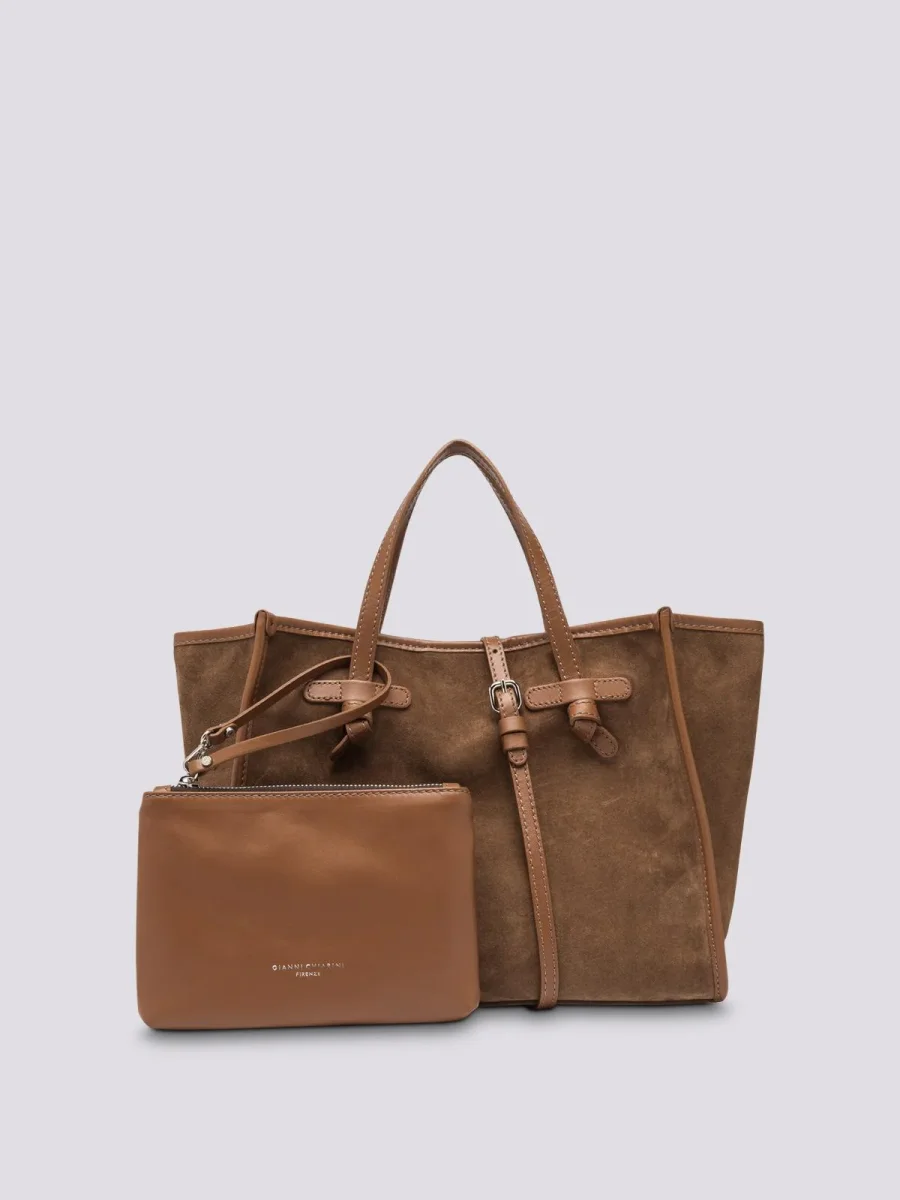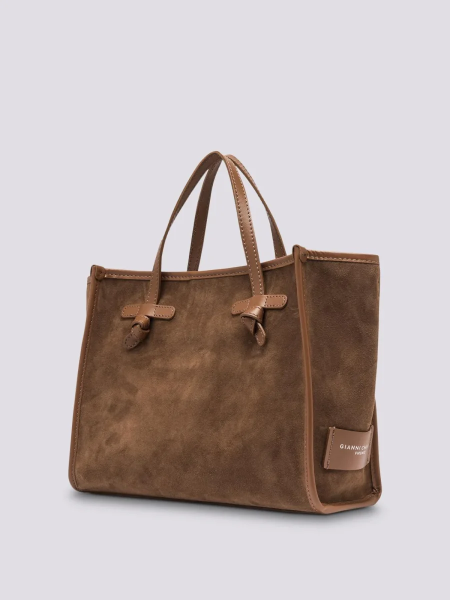 Marcella Miss 32 tote, dalla silhouette semplice e raffinata, è realizzata in pelle scamosciata, ed è impreziosita da profili in pelle in tono. Dotata di manici in pelle e di una comoda chiusura tramite magnete. La fodera interna e la pochette in pelle la rendono un accessorio versatile per completare anche i look più semplici.