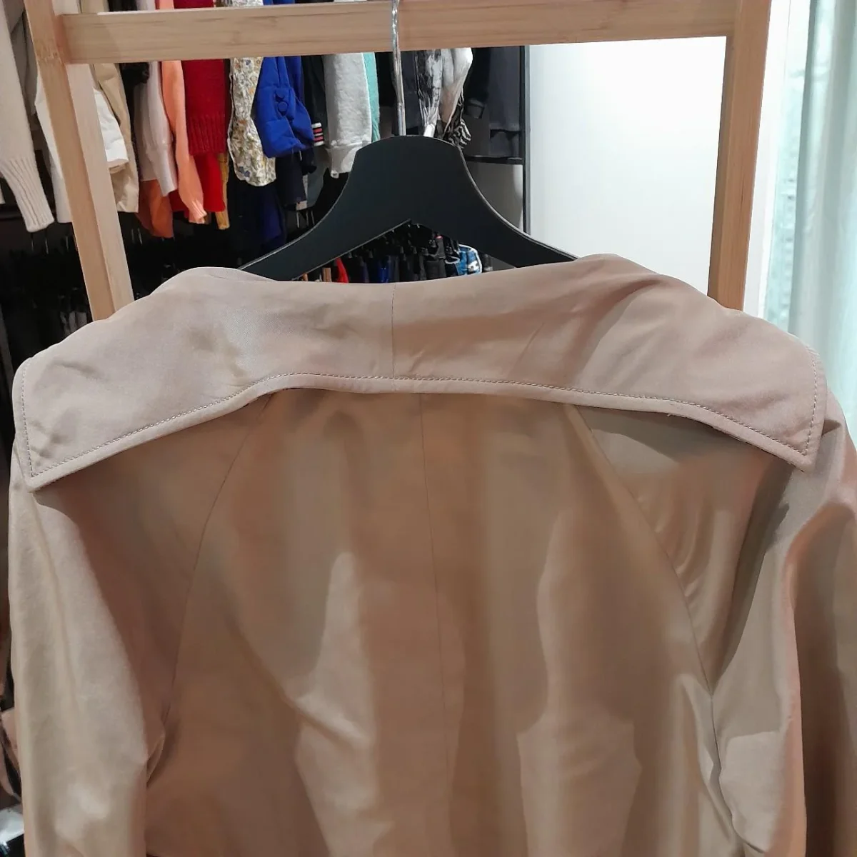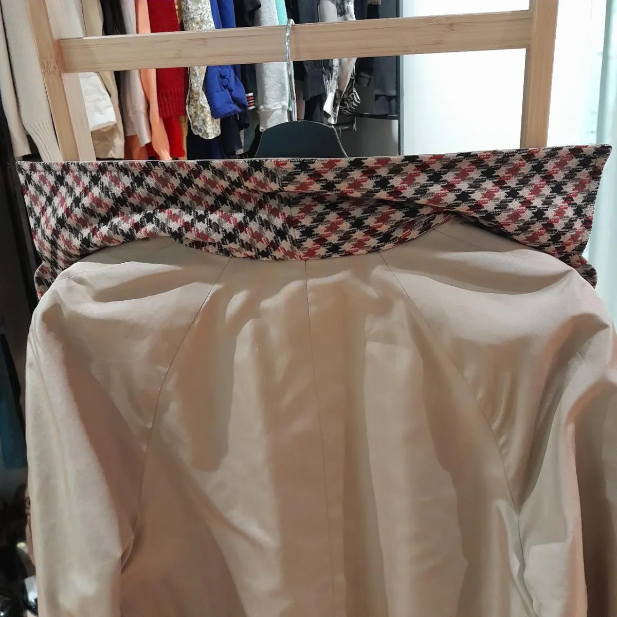 Trench Vintage, tg M, color beige. Sul davanti rimane aperto, due tasche laterali, fodera interna pied de poule in 100% lana. Condizioni ottime.