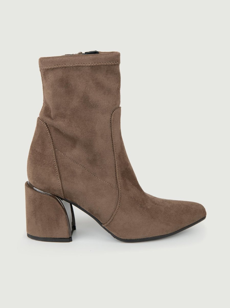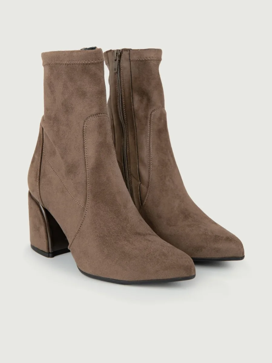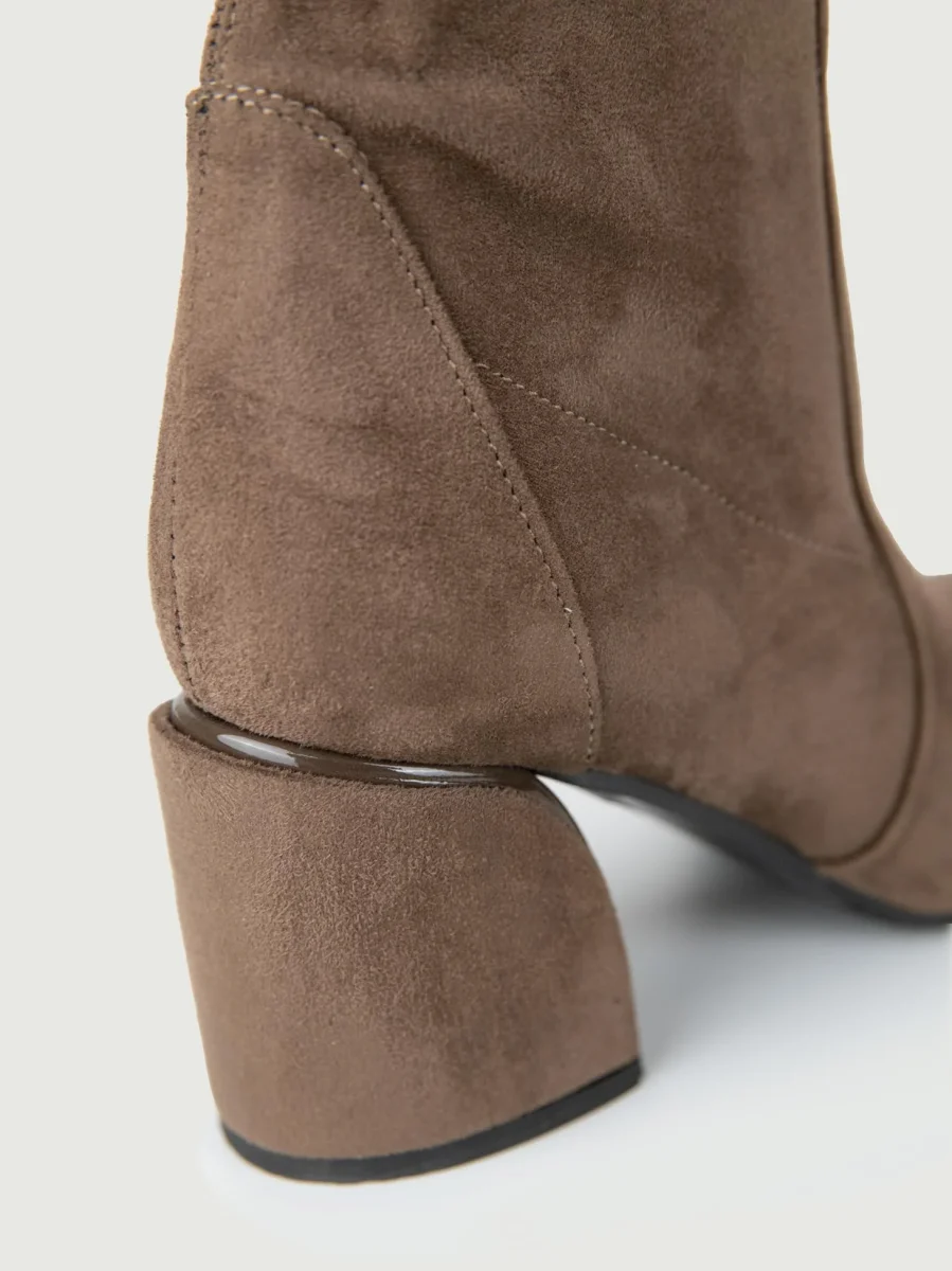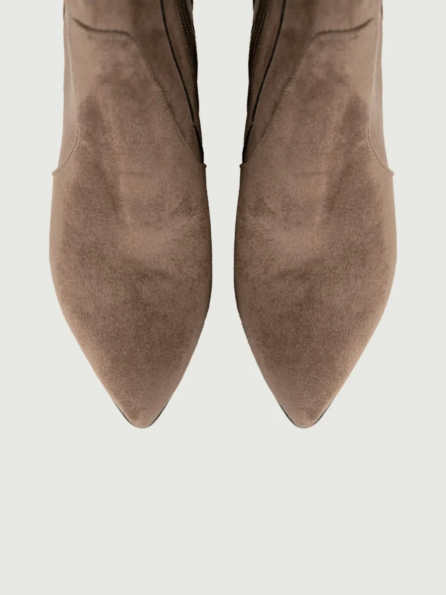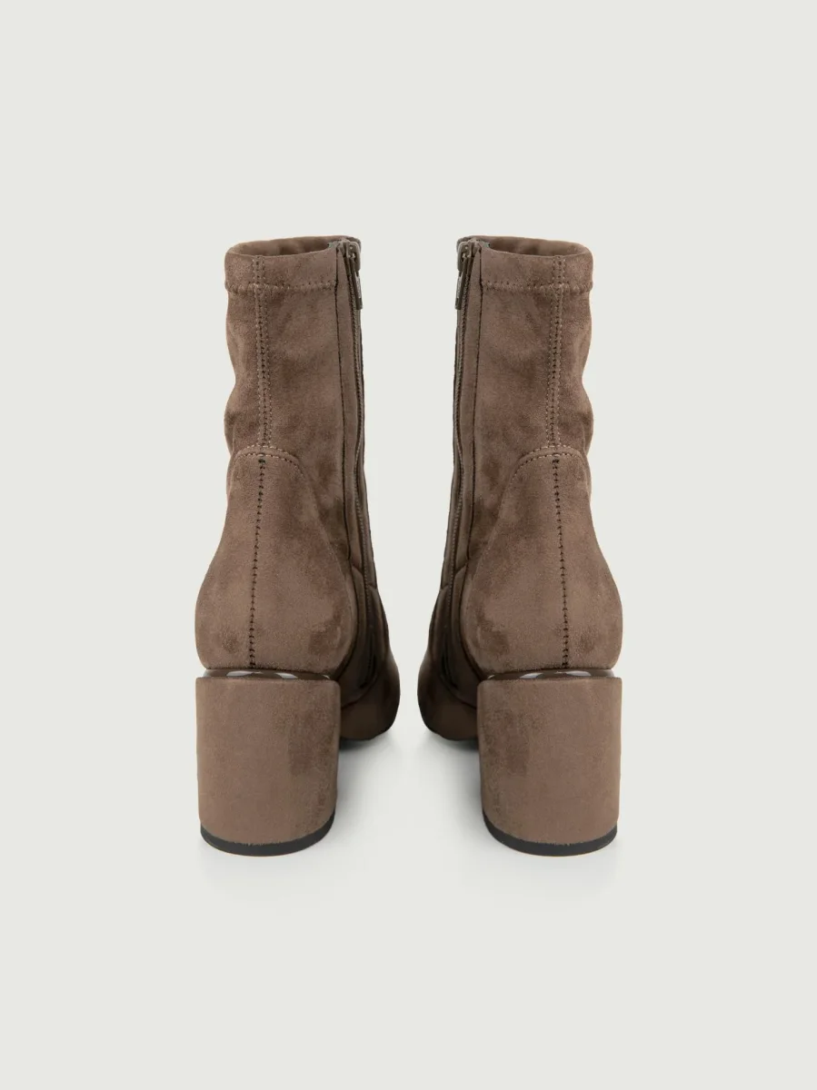 Tronchetto in pelle scamosciata tortora.