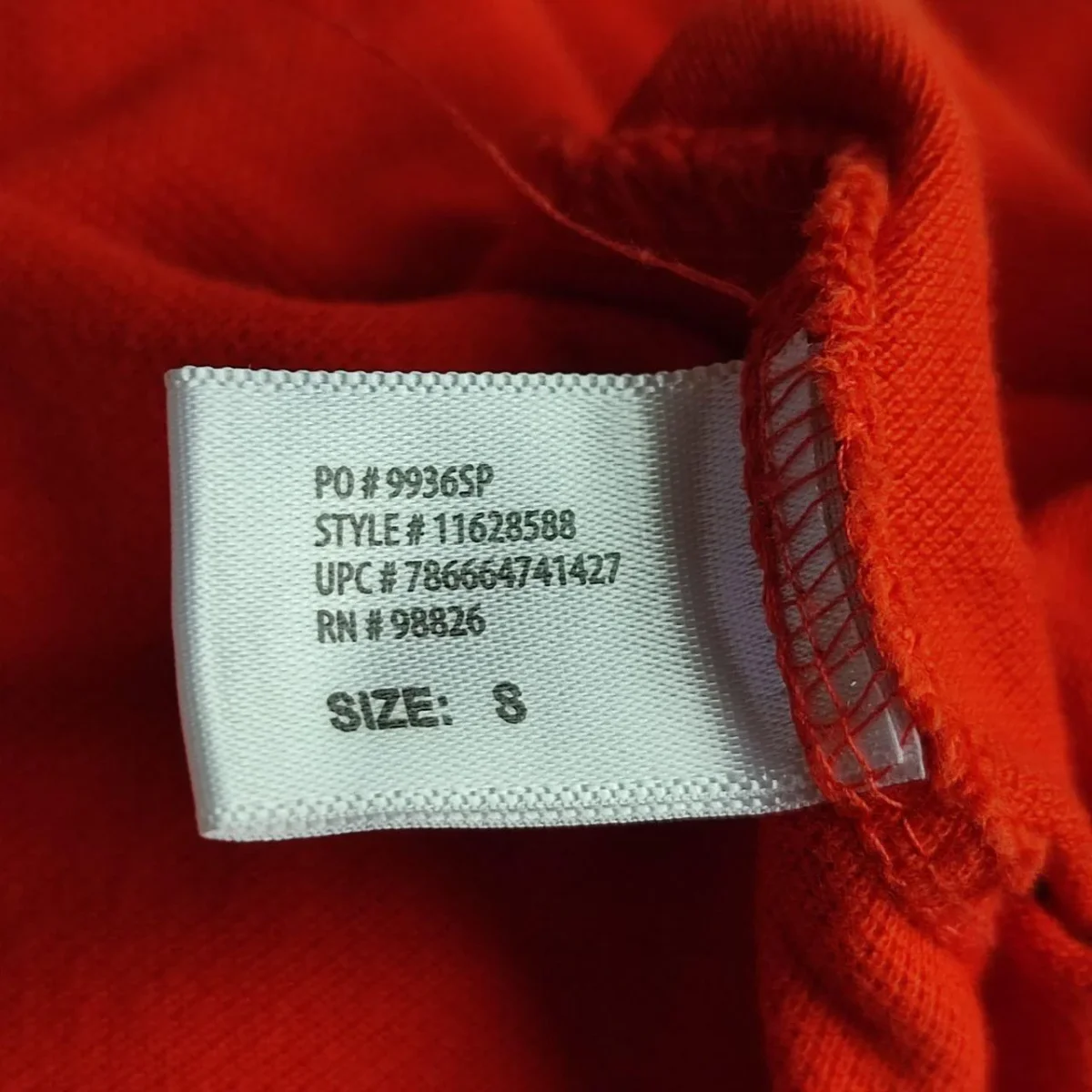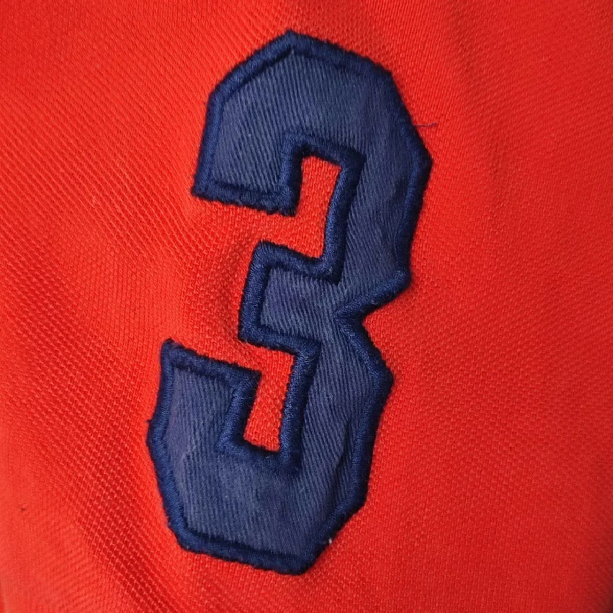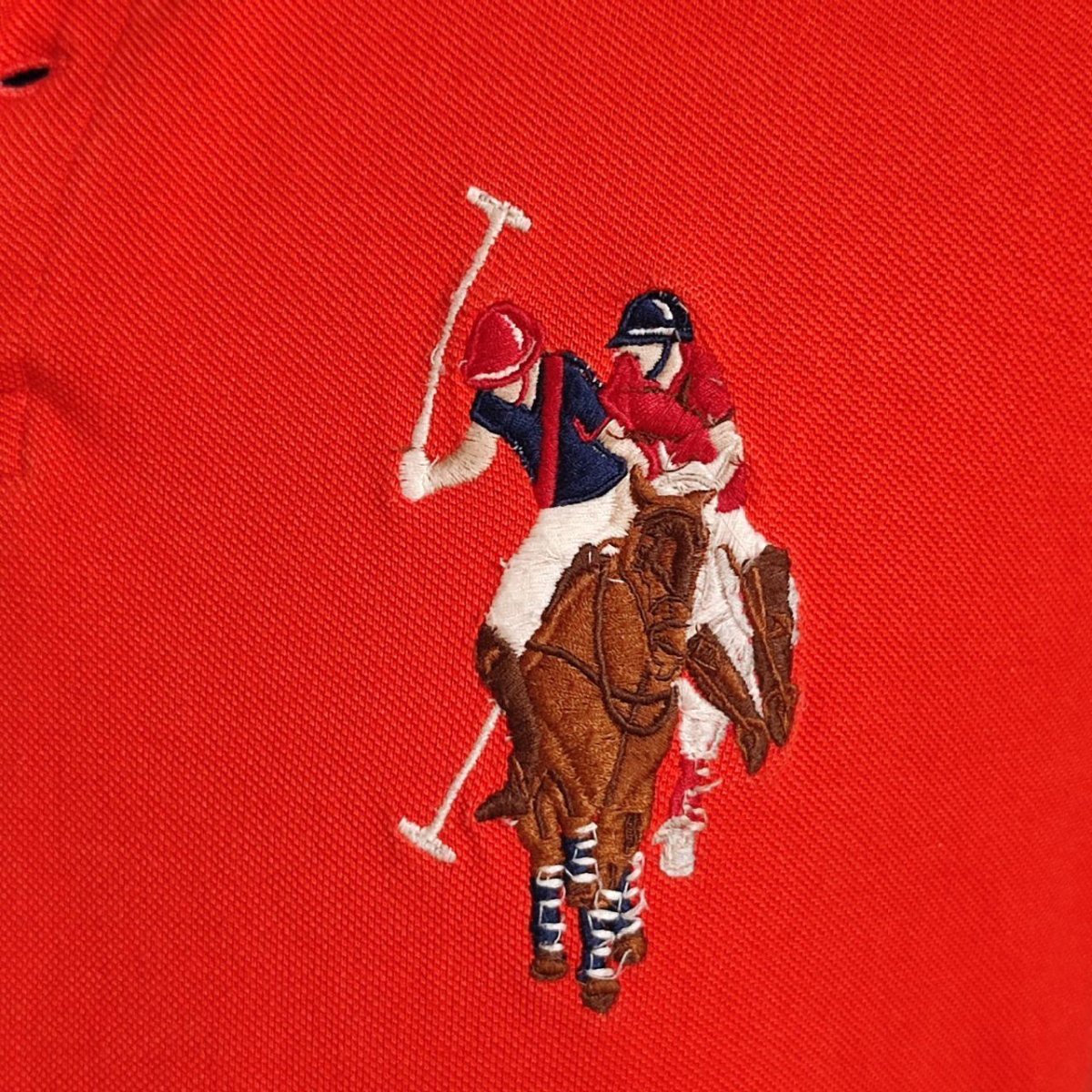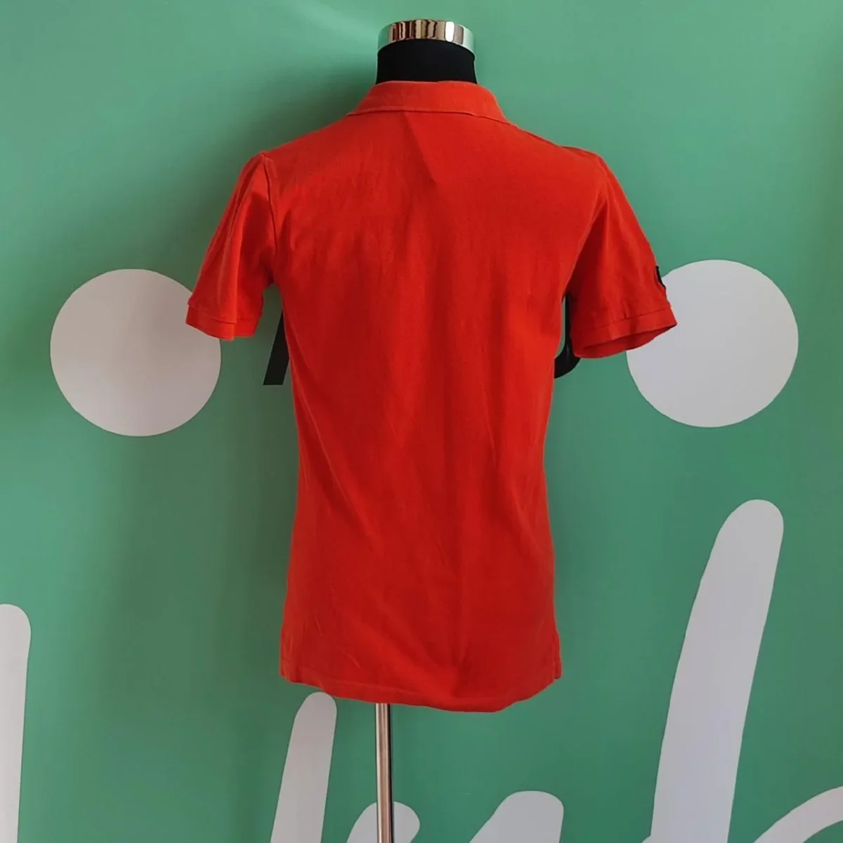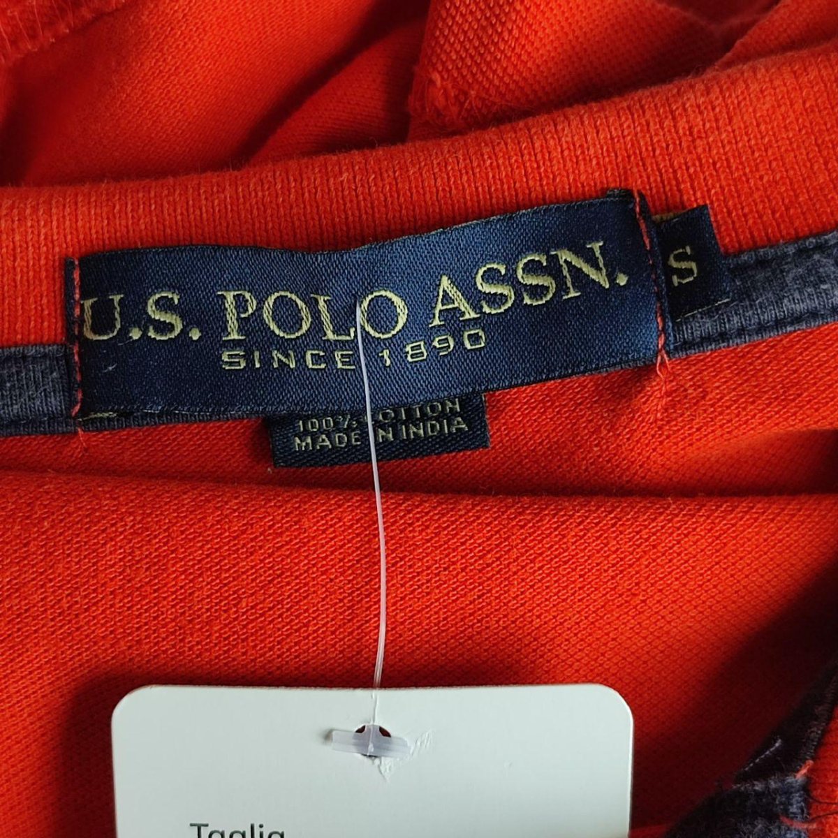 Tshirt polo della marca US POLO ASSN, taglia S. La polo si presente in ottime condizioni, di un colore tra l’arancio e il rosso. Sulla parte centrale a sinistra della maglietta è presente il logo in grande della Ralph Lauren. Mentre sulla manica destra è presente il numero 3 ricamato a punto. Il tessuto è composto al 100% di cotone.