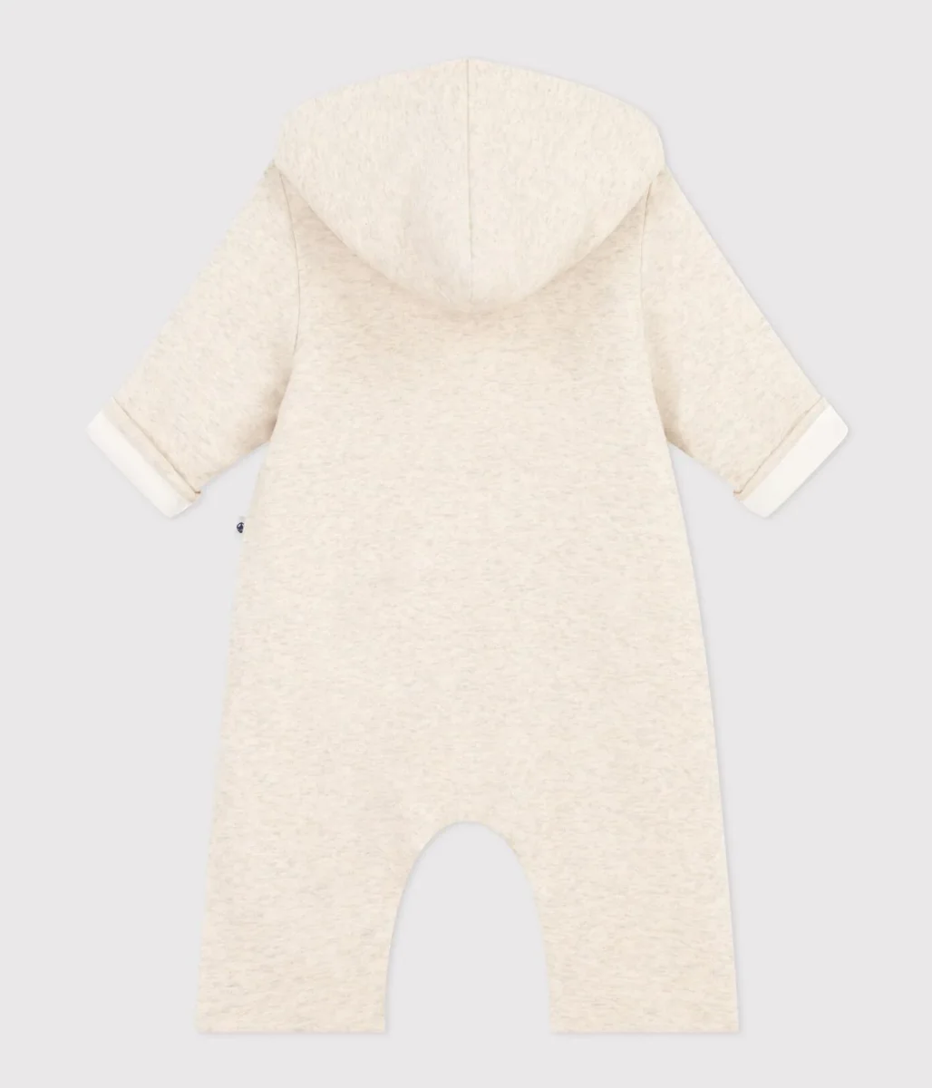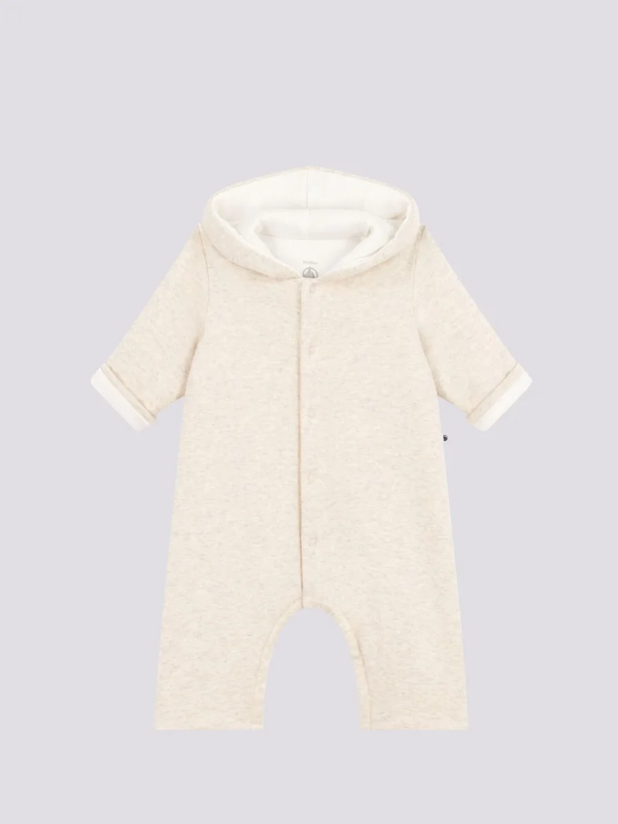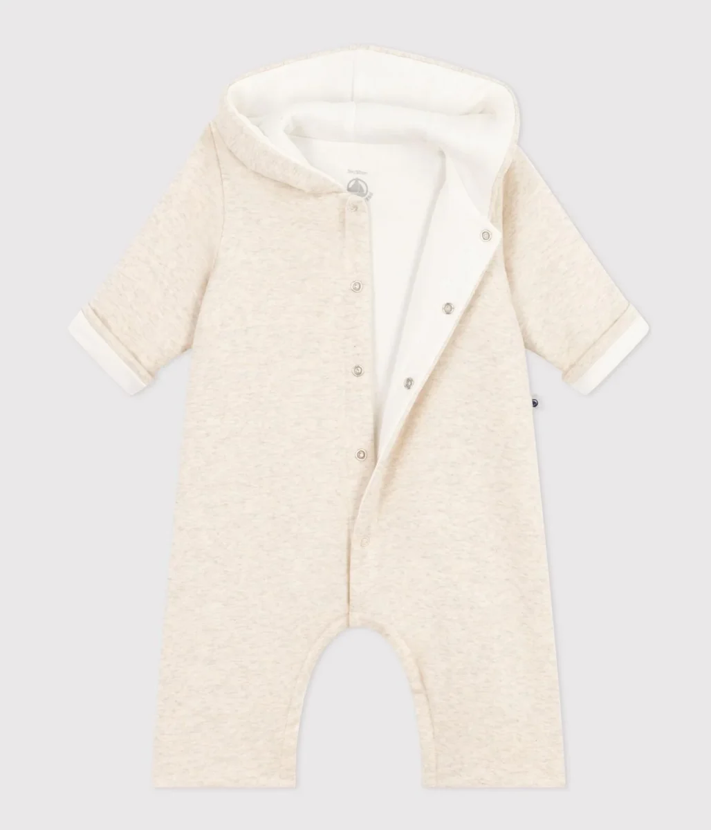 Tutina senza piedi a costine in ovattina, un tessuto caldo e soffice.