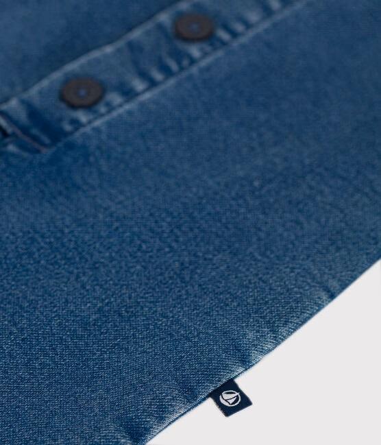 Questo tessuto in denim ha un effetto felpato, morbido e confortevole per accompagnare il bambino nei suoi movimenti.