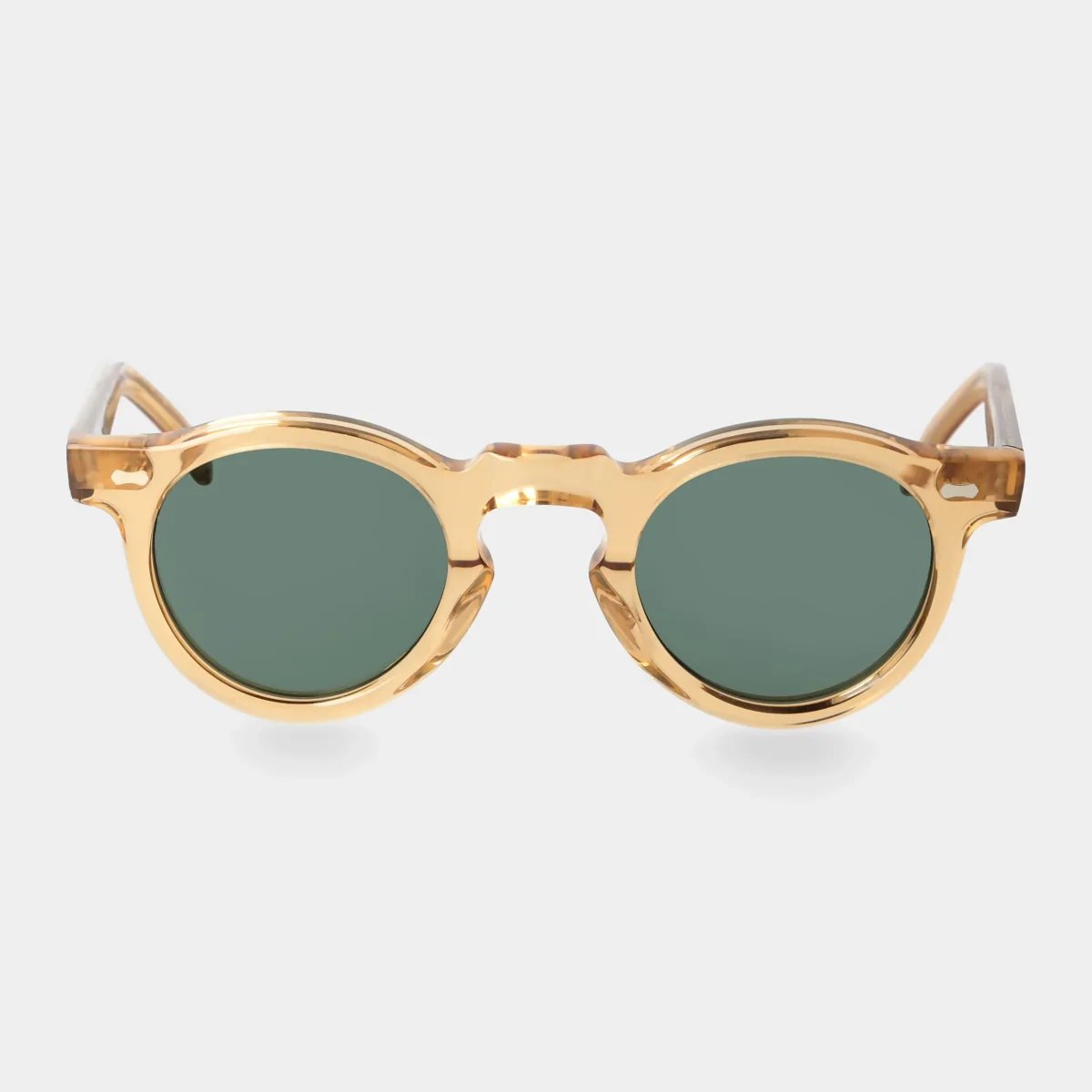L’inconfondibile montatura rotonda con ponte a chiave è declinata nella delicata colorazione Champagne, must-have per la primavera. Completano il modello sostenbile le lenti verdi bio-based.