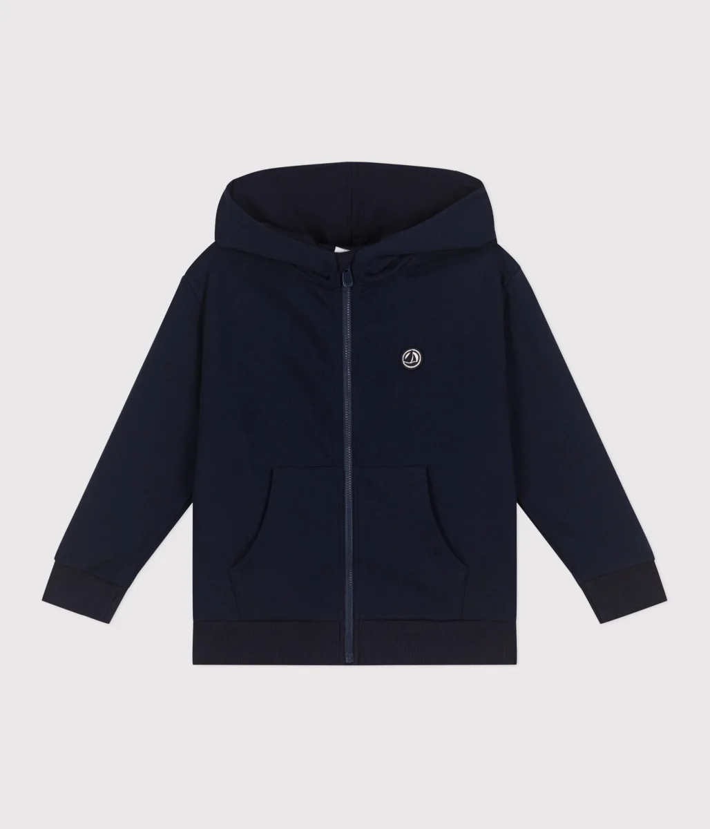 Felpa con cappuccio e cerniera in cotone tinta unita bambino