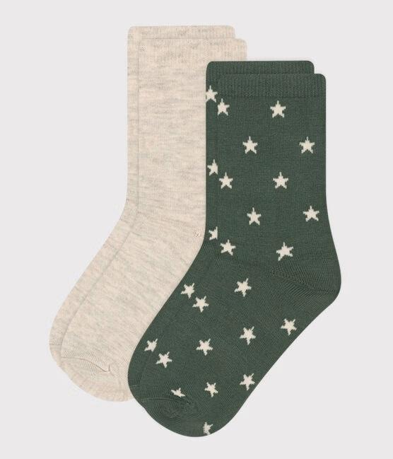 2 paia di calzini bianco e verde a stelle in cotone