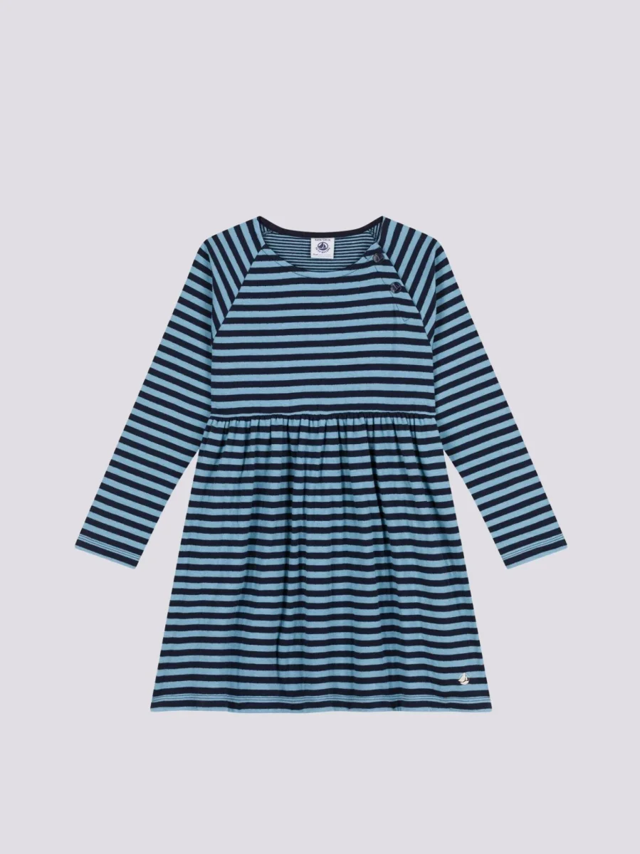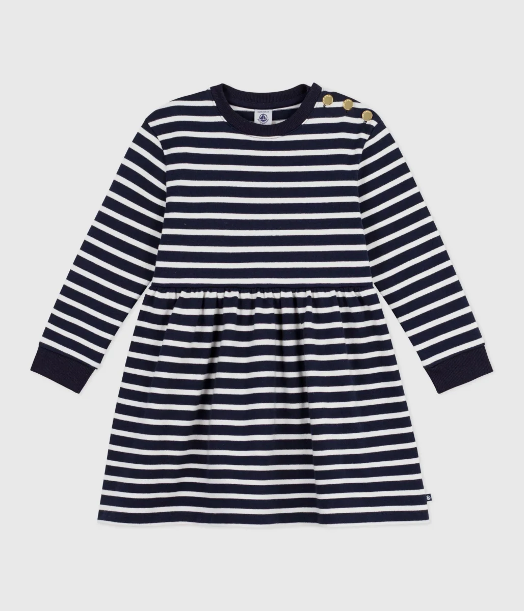Abito a righe bicolore a maniche lunghe in felpa garzata bambina