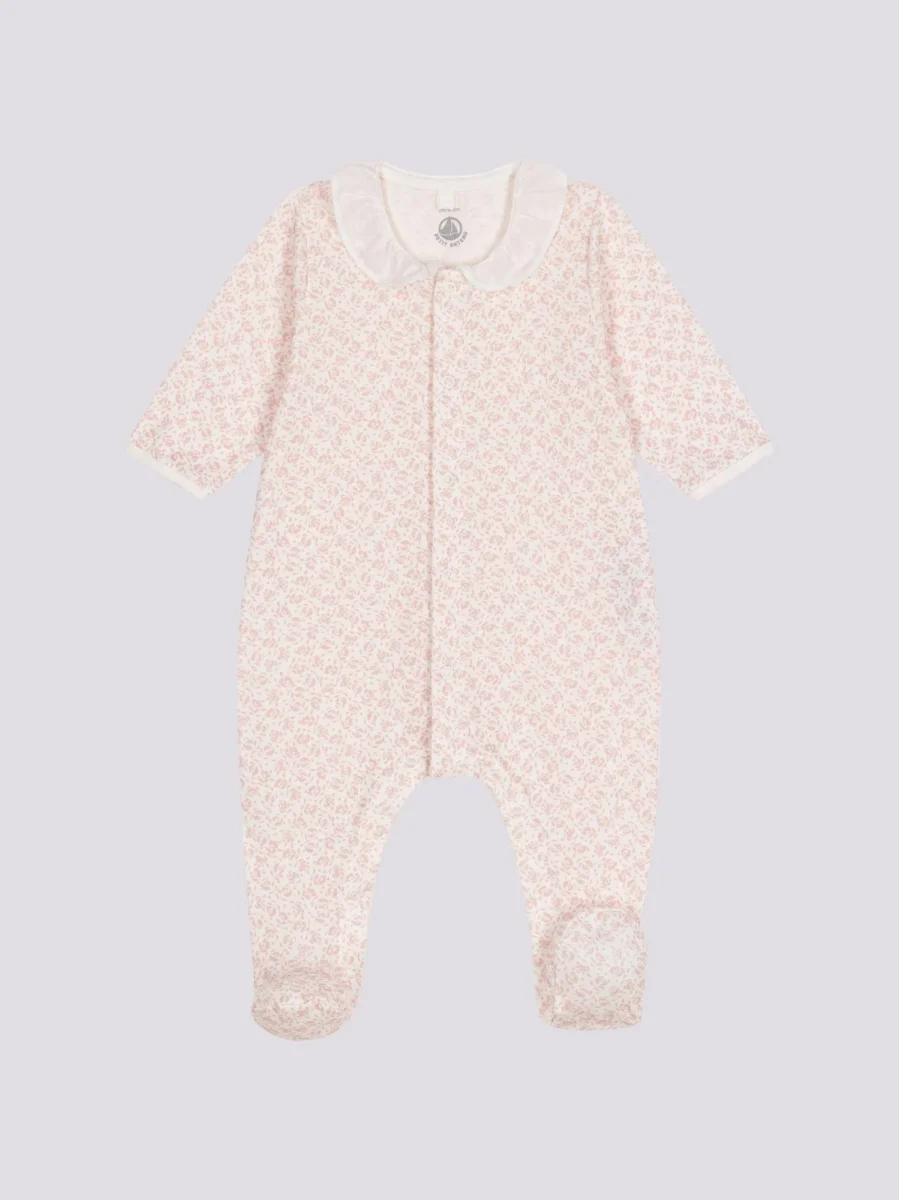 Tutina pigiama in cotone a fiori con colletto