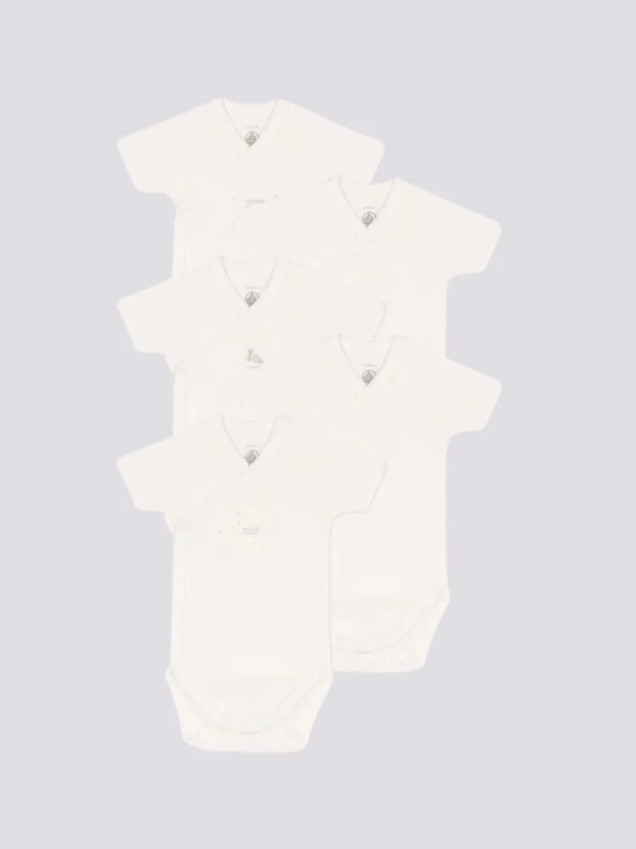 CONFEZIONE DA 5 BODY BIANCHI INCROCIATI IN COTONE