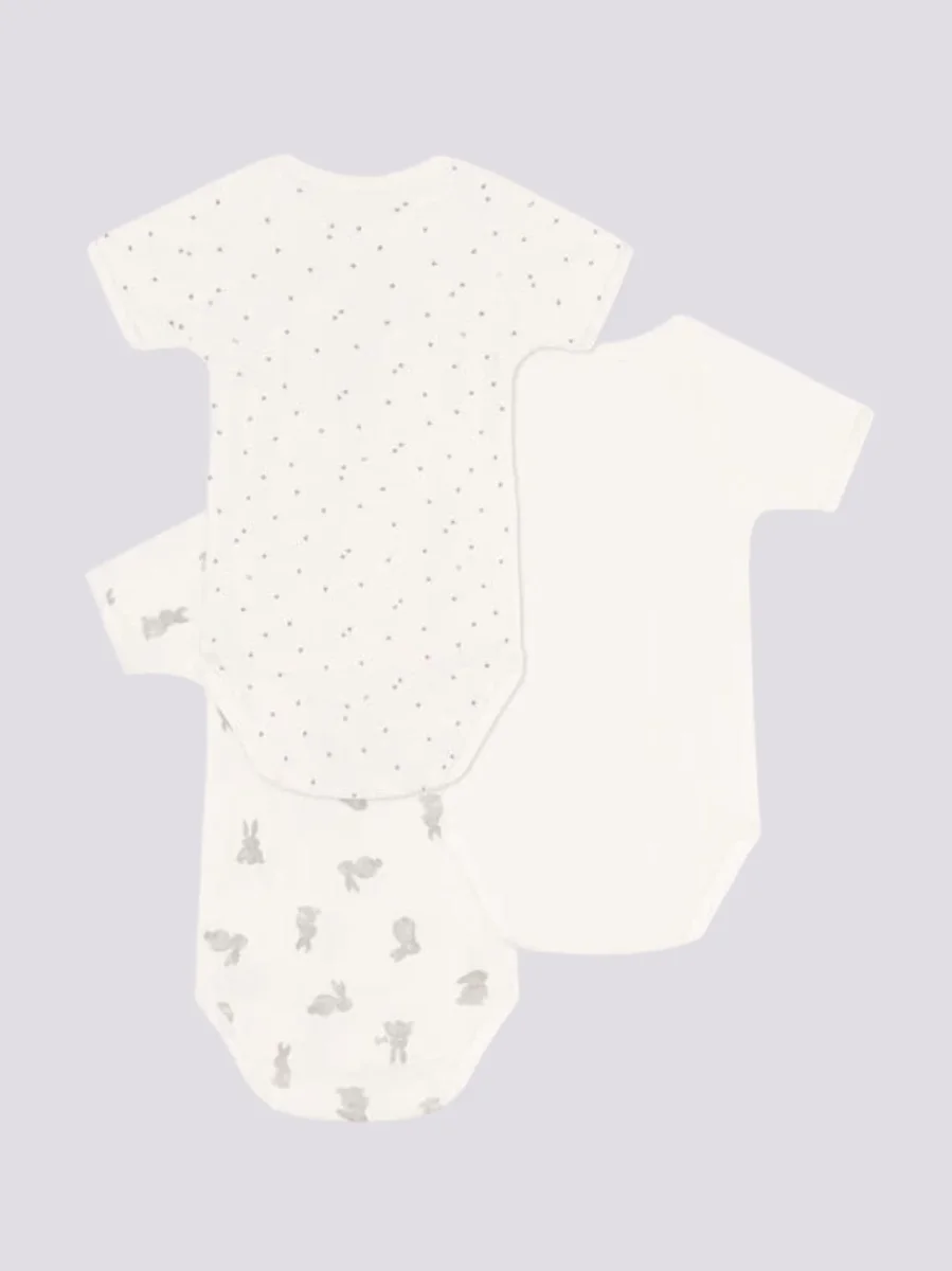 CONFEZIONE DA 3 BODY INCROCIATI IN COTONE CON CONIGLI