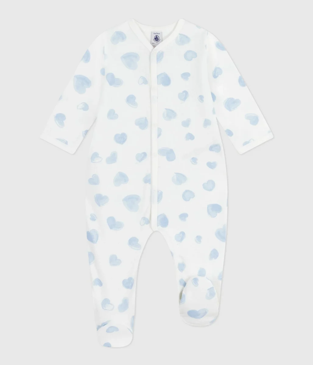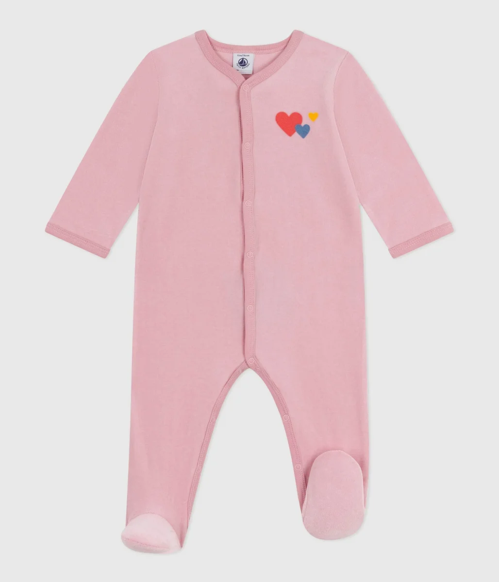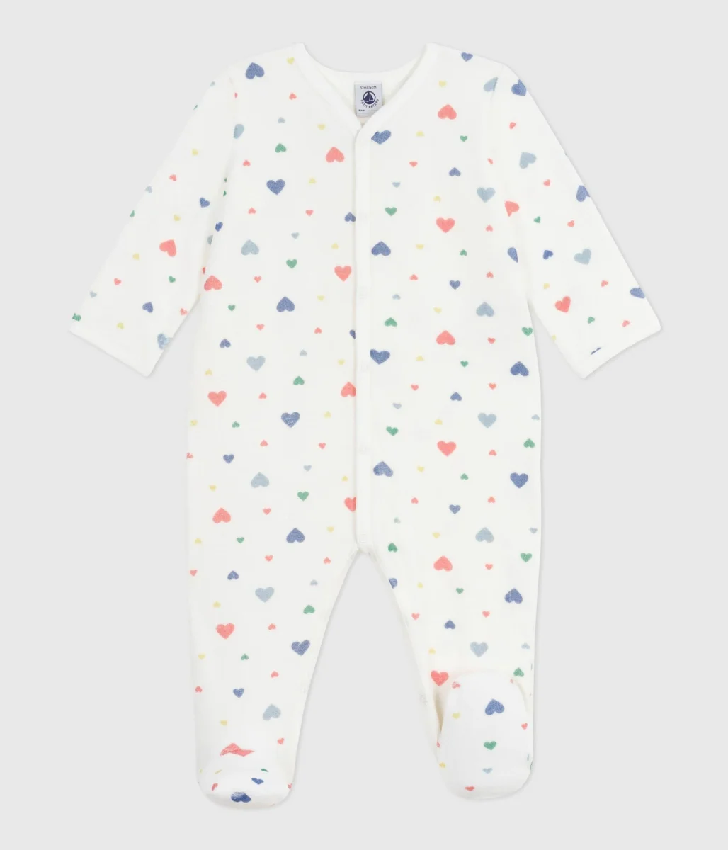 Pigiama in ciniglia con colletto stampato a cuori neonato