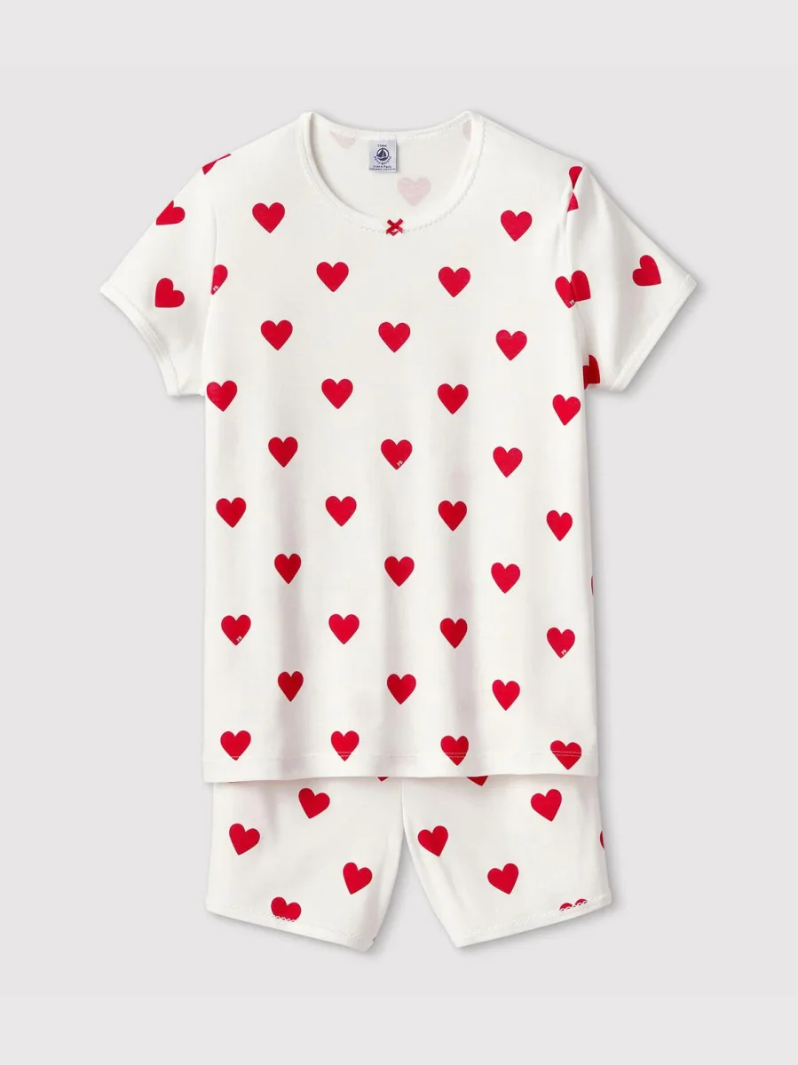 PIGIAMA CORTO BAMBINA IN COTONE MOTIVO CUORE