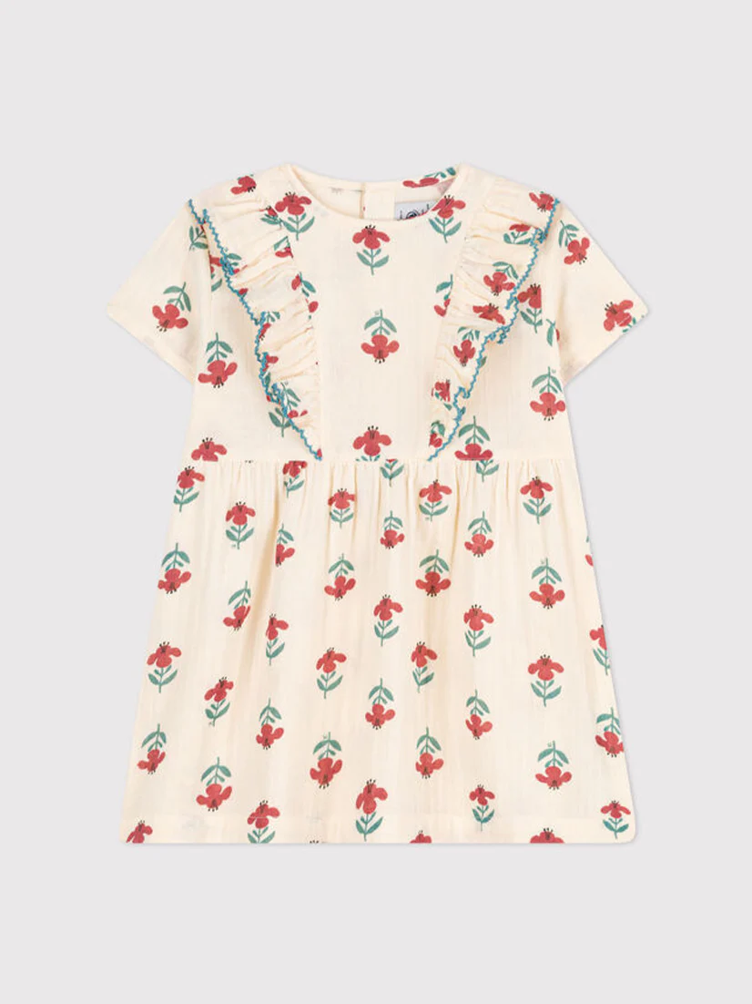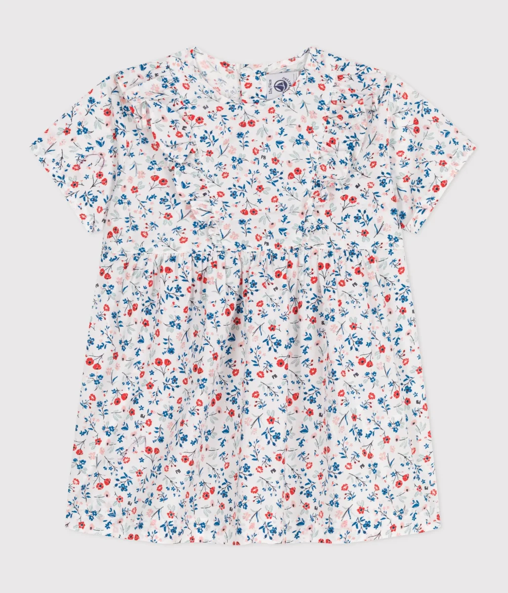 Abito a maniche corte in cotone con stampa a fiori bebè