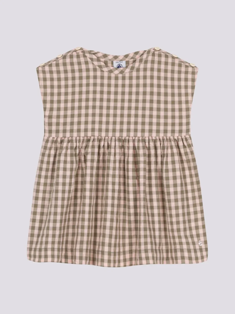 Abito a maniche lunghe in garza di cotone a quadri