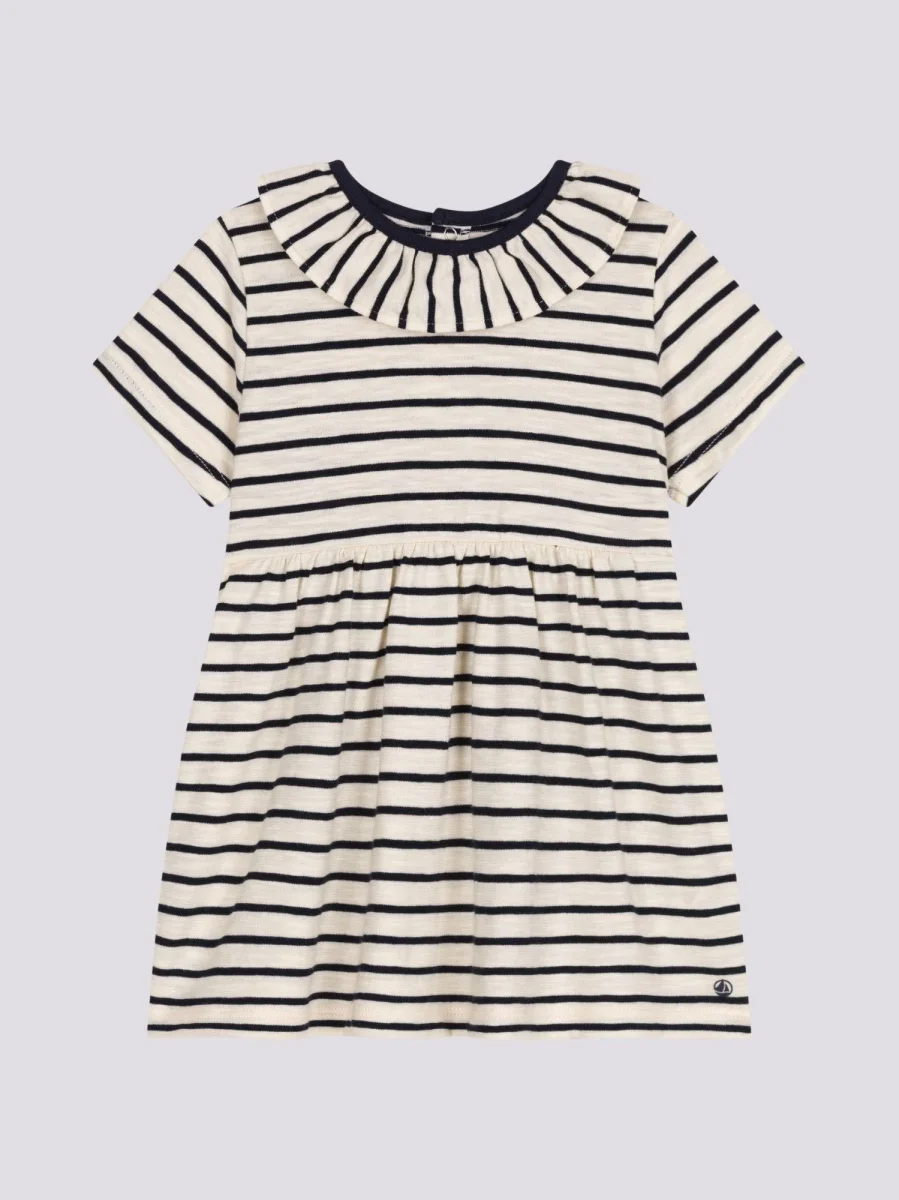 Abito a maniche corte con collo alla marinara in cotone a righe