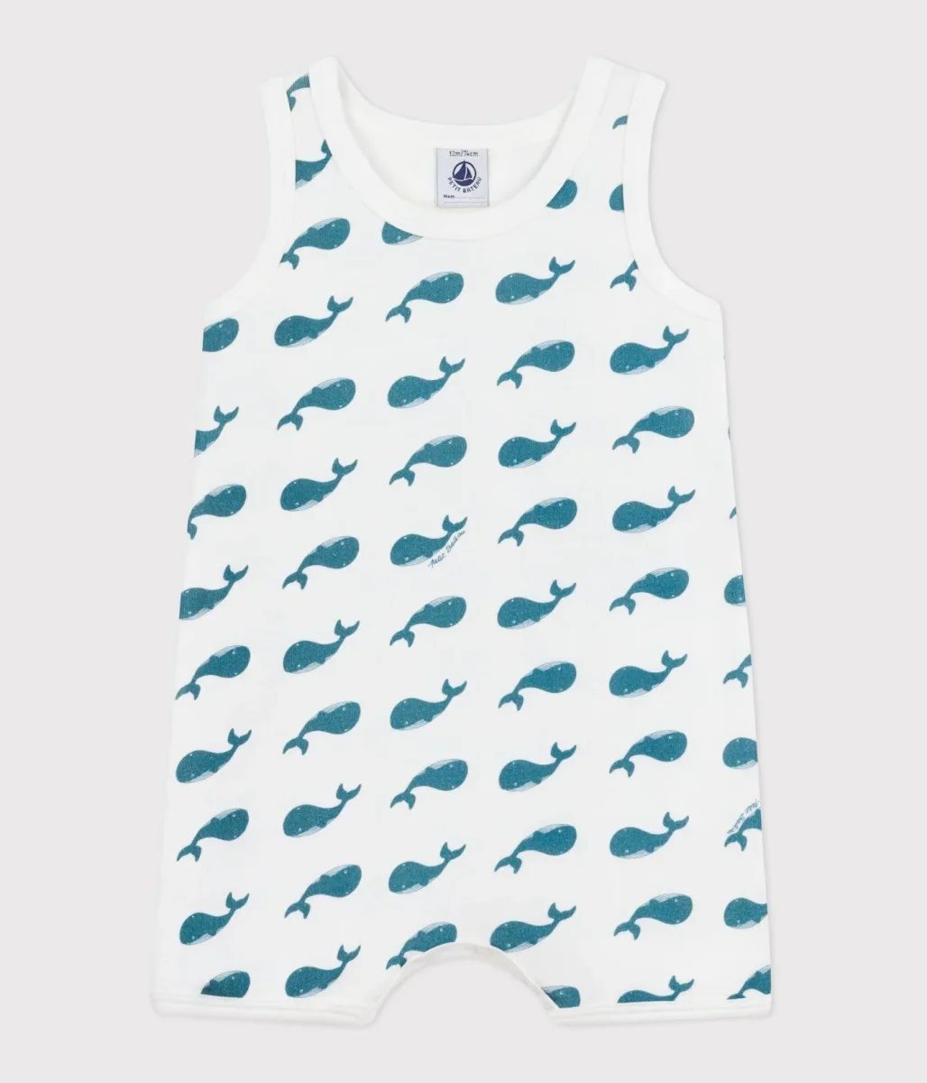 TUTINA CORTA CON BALENE BLU IN COTONE BEBÈ