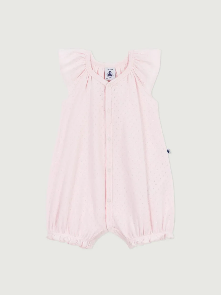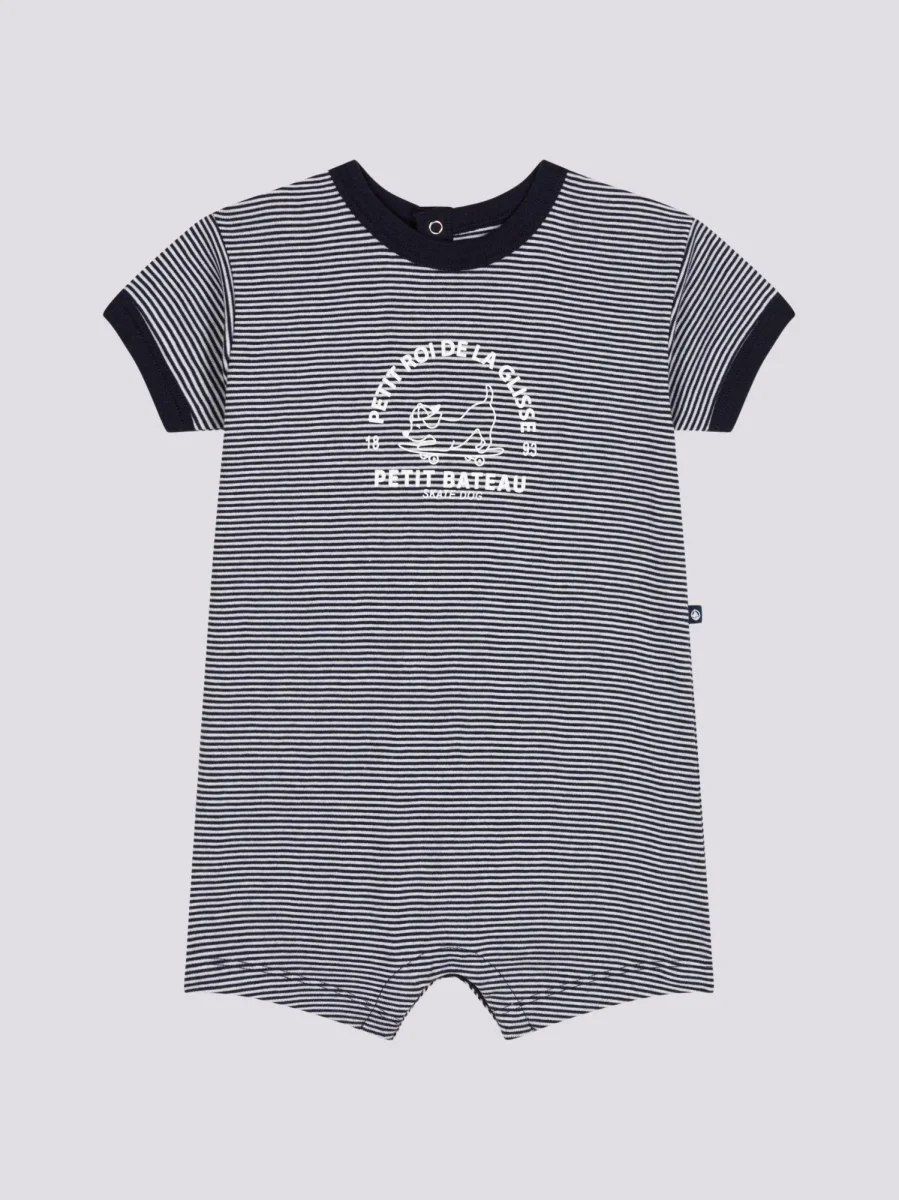 Tutina corta in cotone con colletto a cuori a righe bebè