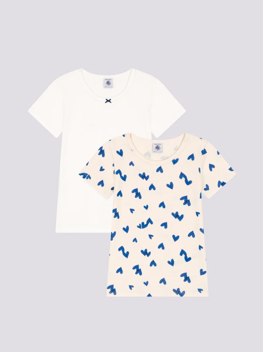 CONFEZIONE DA 2 T-SHIRT A MANICHE CORTE BAMBINA IN COTONE MOTIVO CUORE