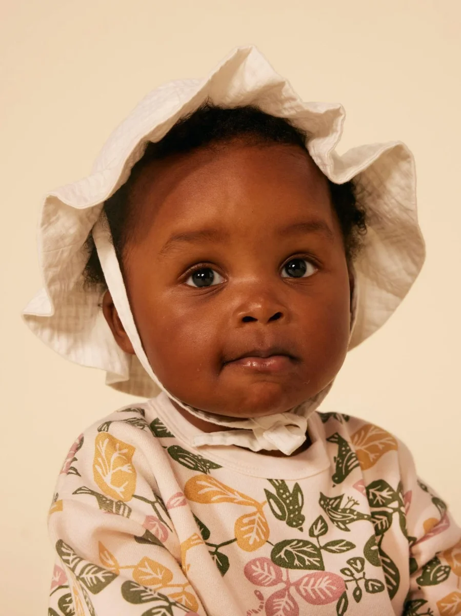 Cappellino con laccetti e stampa a fiori