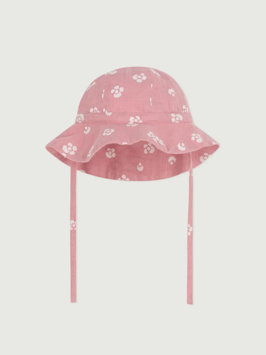 CAPPELLINO A FIORI ROSA IN GARZA DI COTONE BEBÈ