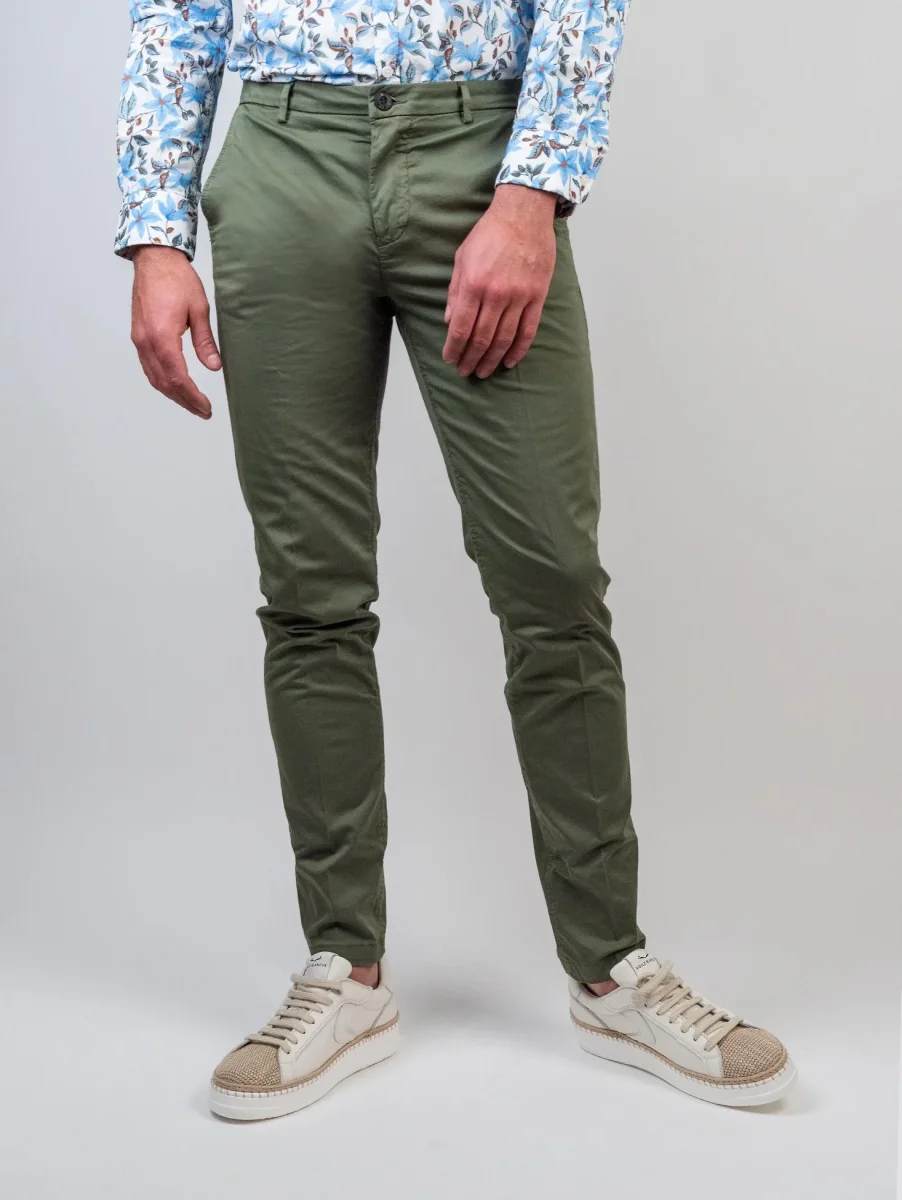 PANTALONE VERDE CON TASCHE A FILO