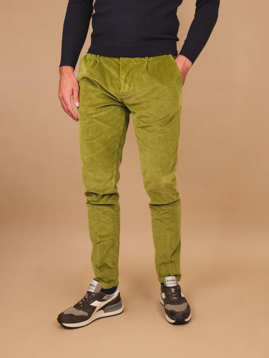 PANTALONE IN VELLUTO VERDE PISTACCHIO CON TASCA A FILO