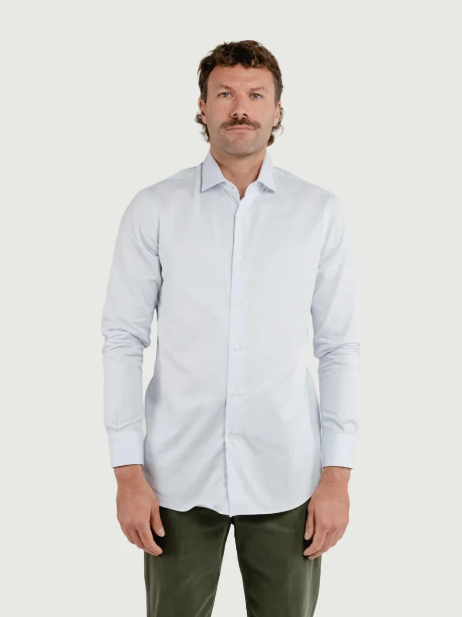 CAMICIA BIANCA SLIM CON MICROFANTASIA CELESTE
