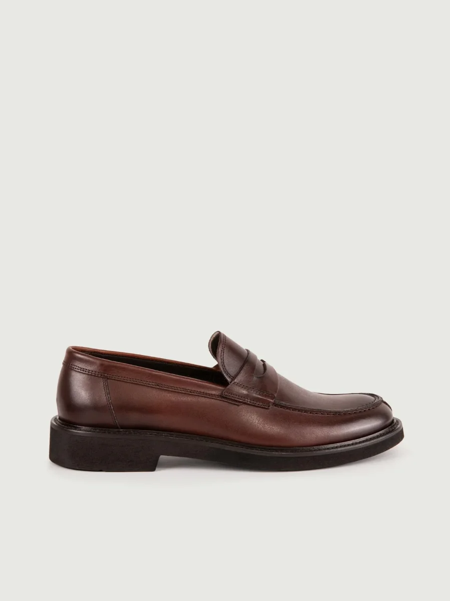 MOCASSINO CON PENNY IN PELLE ANTICATA MARRONE