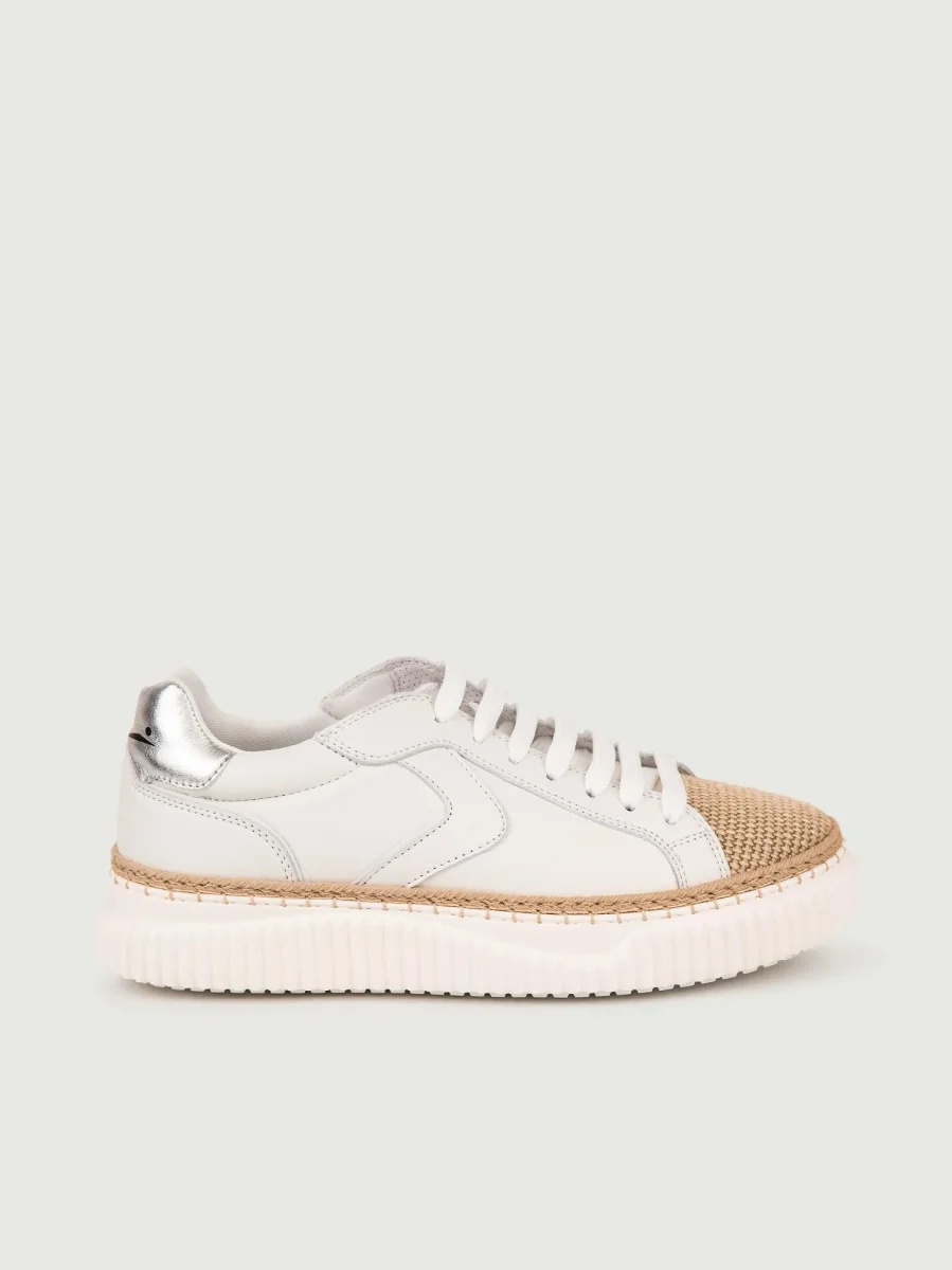 SNEAKER LIPARI IN PELLE CON PUNTA EFFETTO RAFIA