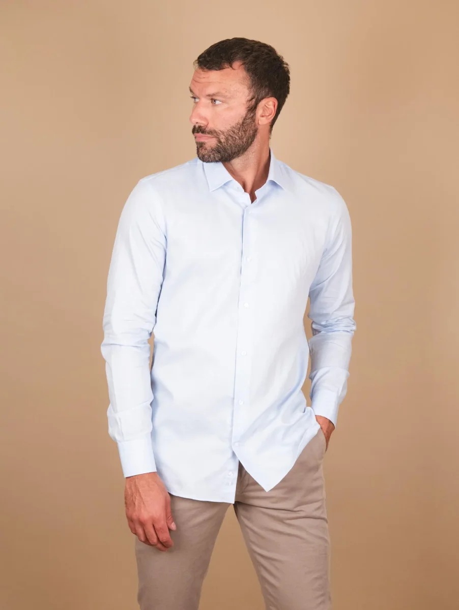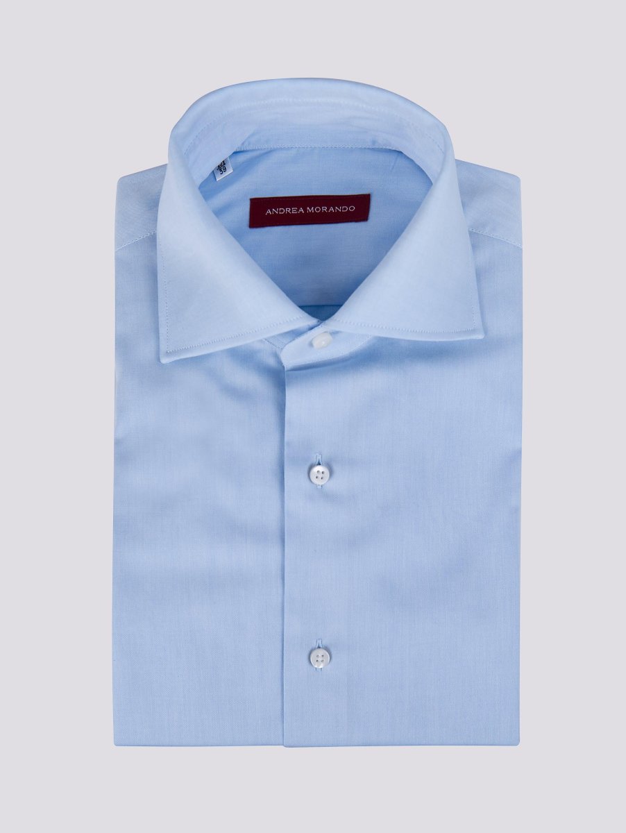 CAMICIA CELESTE CON MICROFANTASIA BIANCA